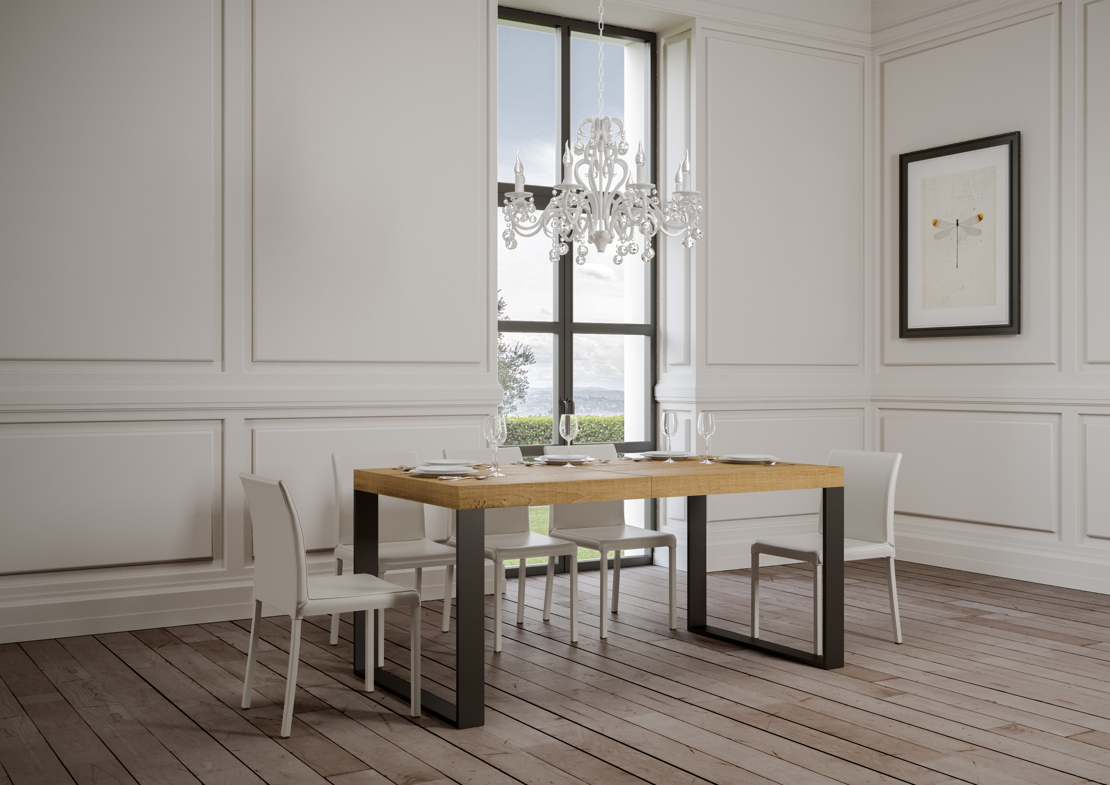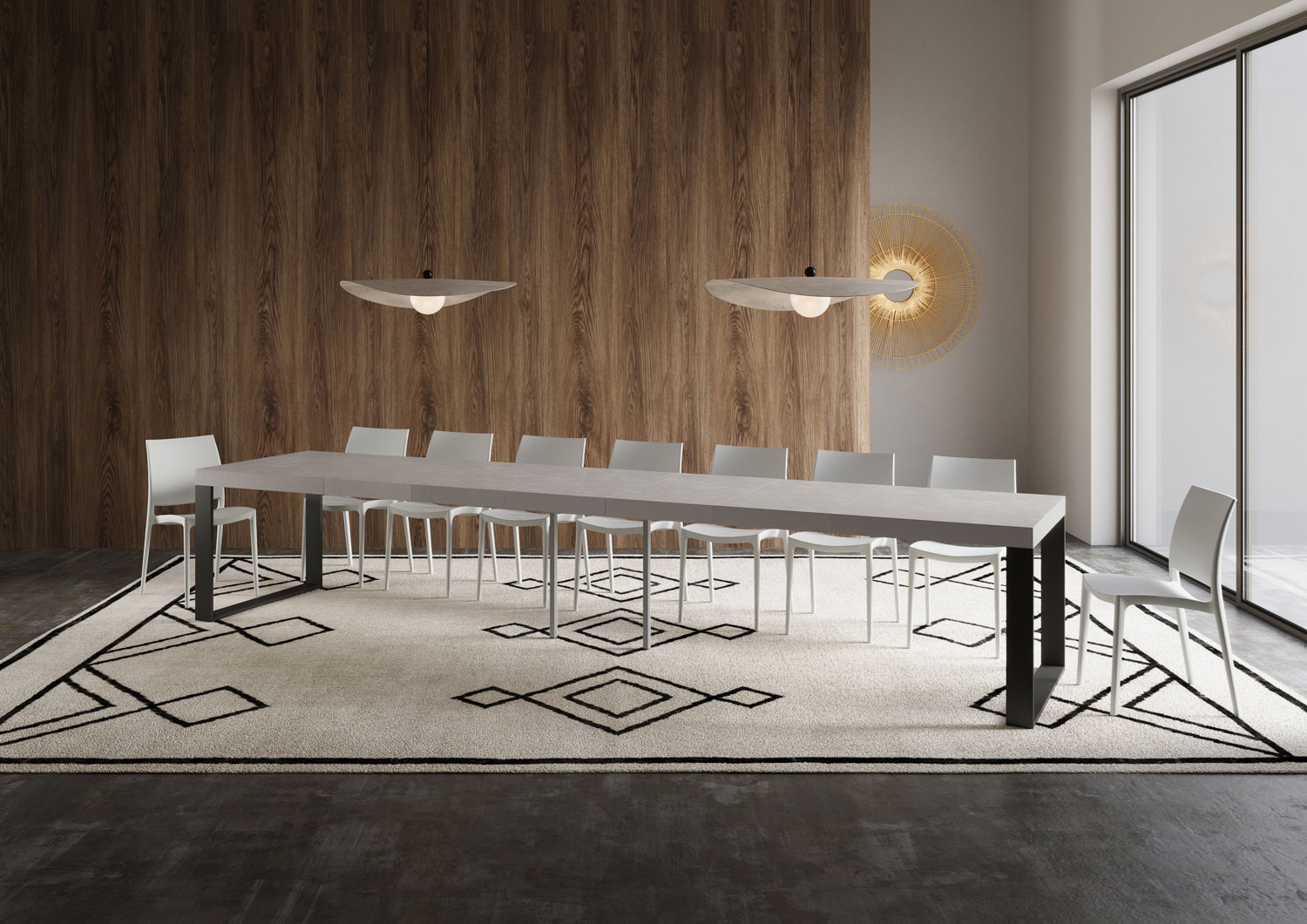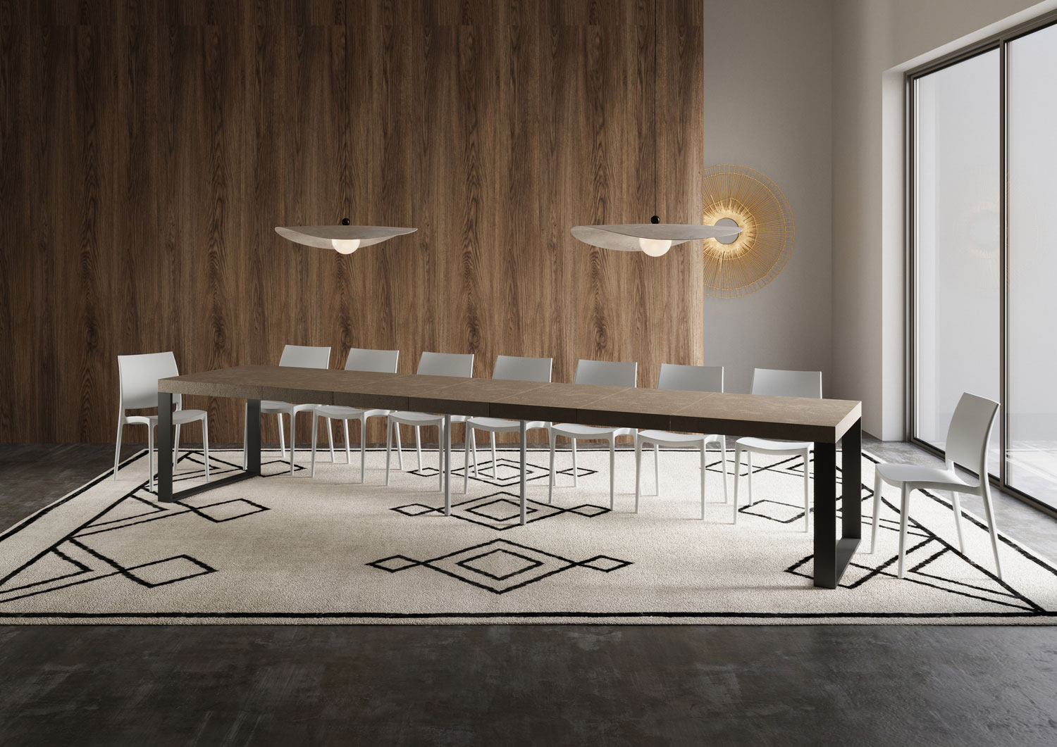 The extendable table Tecno Premium can extend progressively up to 420 cm, and is able to accommodate up to 18 people.