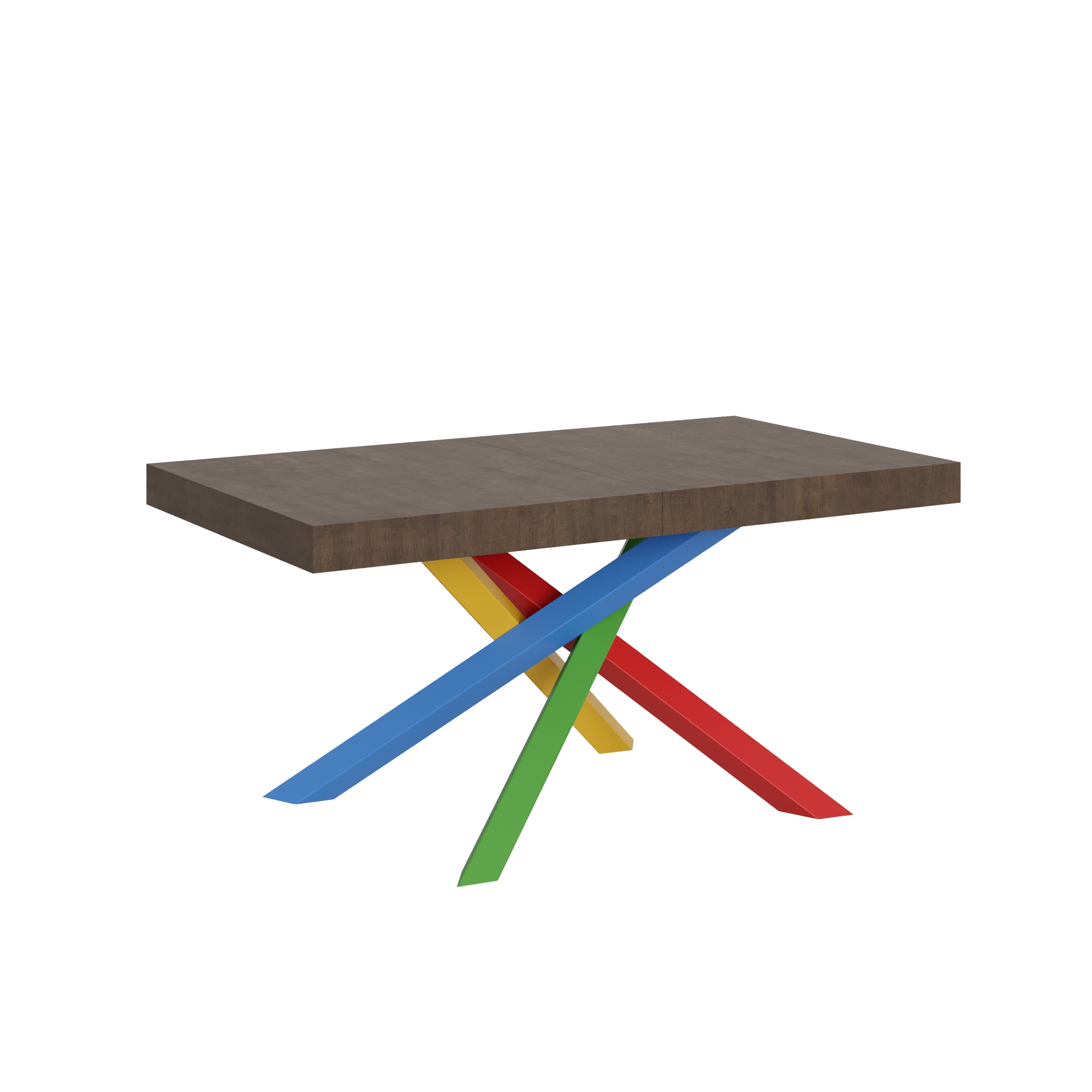 Extendable table Volantis 160 modern and sophisticated in design, fits perfectly in any furnishing style and it proves to be the perfect choice both as a dining table and as a design furnishing piece for the living room, where you can welcome your guests in style. The extendable table Volantis can extend progressively up to 420 cm, and is able to accommodate up to 18 people. Made of melamine boards, iron legs, tabletop worked in miter folding technique. The extending mechanism with aluminium telescopic rails and the provided lateral supports make the table steady and sturdy even when fully extended. When not used, two extension leaves can be stored beneath the tabletop, ready to use. The other three leaves have to be stored elsewhere. Itamoby product Made in Italy Sizes: Closed table: L.160 D.90 H.77 cm Length with 1 extension leaf: 212 cm Length with 2 extension leaves: 264 cm Length with 3 extension leaves: 316 cm Length with 4 extension leaves: 368 cm Length with 3 extension leaves: 420 cm