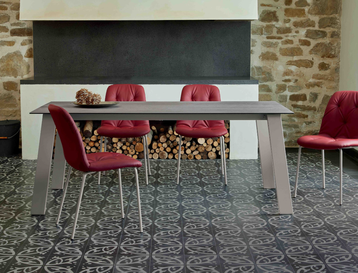 The structure is made of aluminium-coloured lacquered steel , solid and minimal, perfect for contemporary environments.