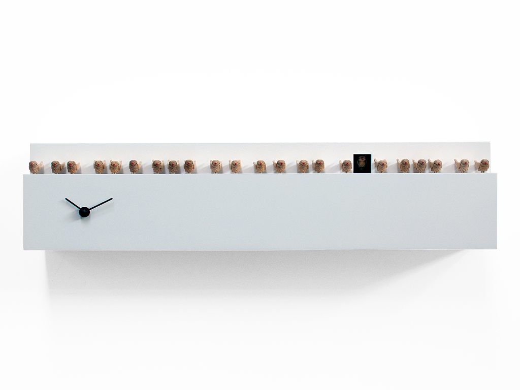 Cuckoo clock made in wood. Battery quartz movement. A light sensitive sensor automatically stops the ringer in the absence of light.