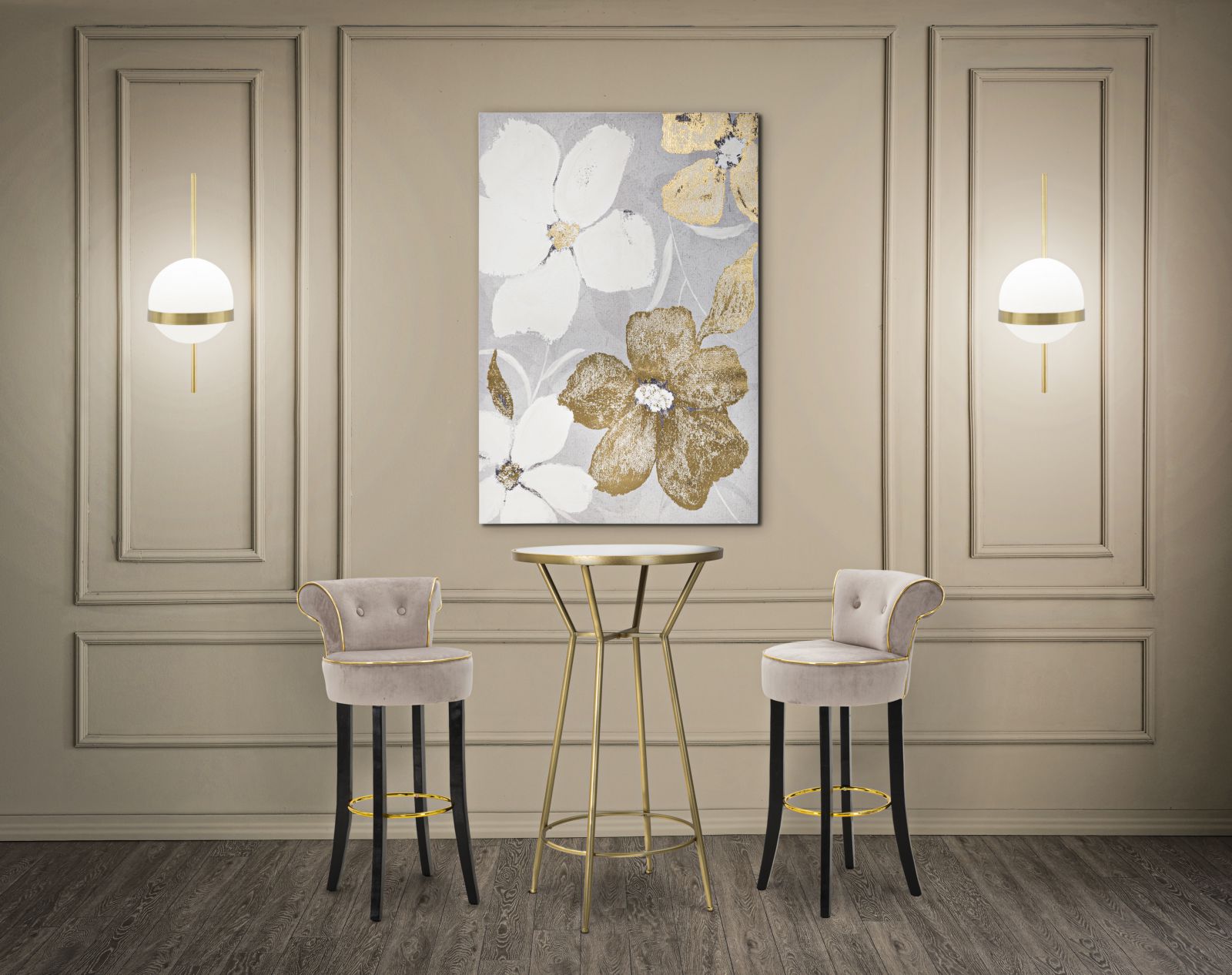 Floral design wooden frame canvas print. The pastel colors combined with the golden decorations create a delicate contrast that gives a touch of brightness to any room.
