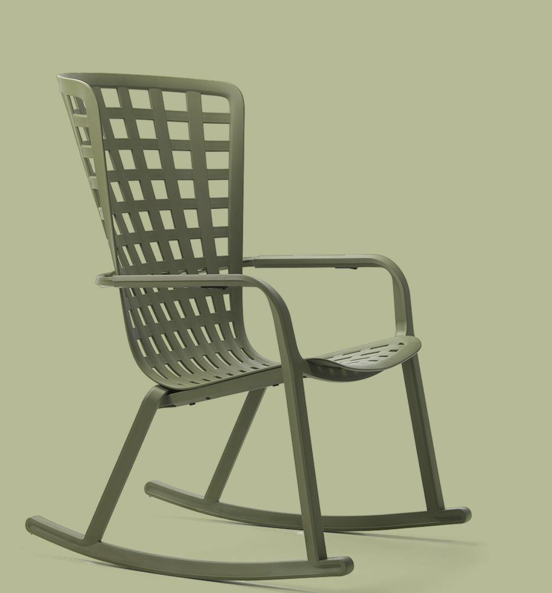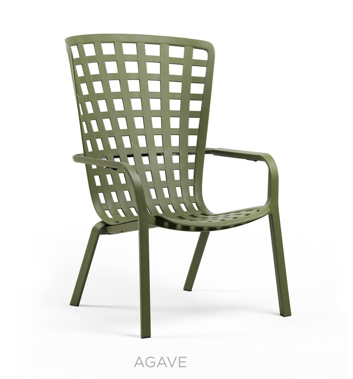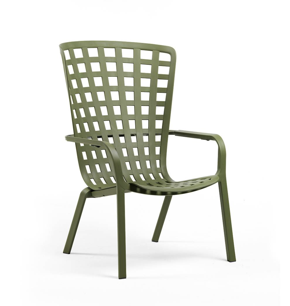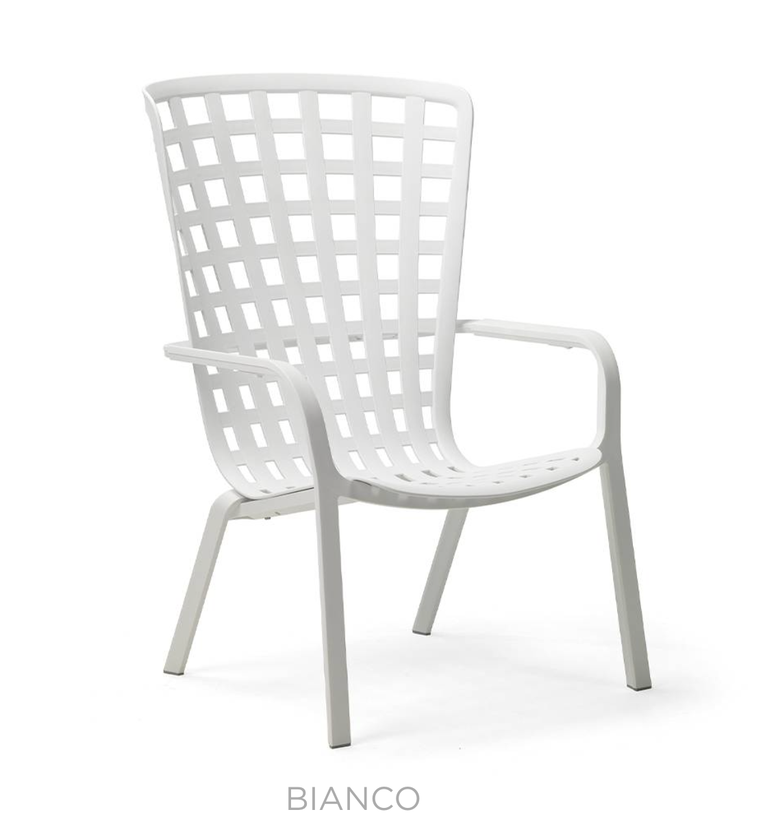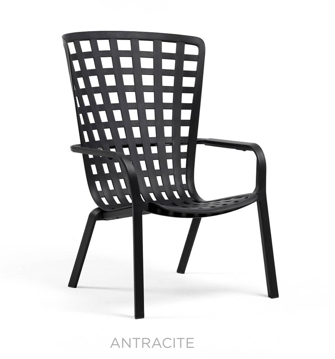Folio is an outdoor relaxation armchair made of perforated fiberglass resin with checked patterns and a matte finish. The armchair has an enveloping backrest seamlessly connected to the generously lowered seat, a unique and refined structural embrace that can be reclined in two comfort positions.