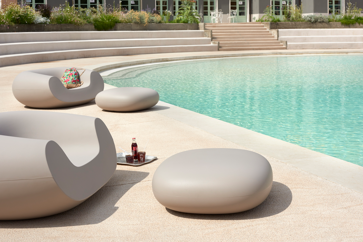 Chubby Low is the SLIDE pouf whose shapes recall the natural grandeur of a boulder. Made of polyethylene and by rotational molding.