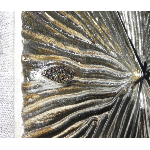 Composite ceramic element, hand decorated with silver leaf, on linen structure, glossy finish.
