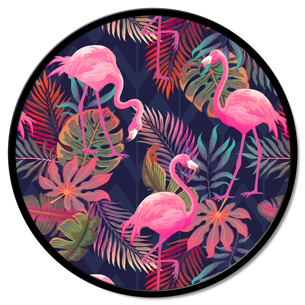 Round wood fiber panel covered in pure cotton canvas printed in high definition and with matt lacquered metal frame.