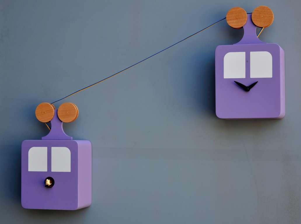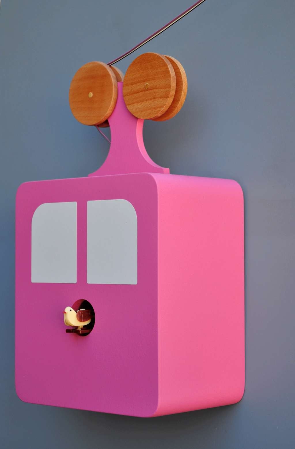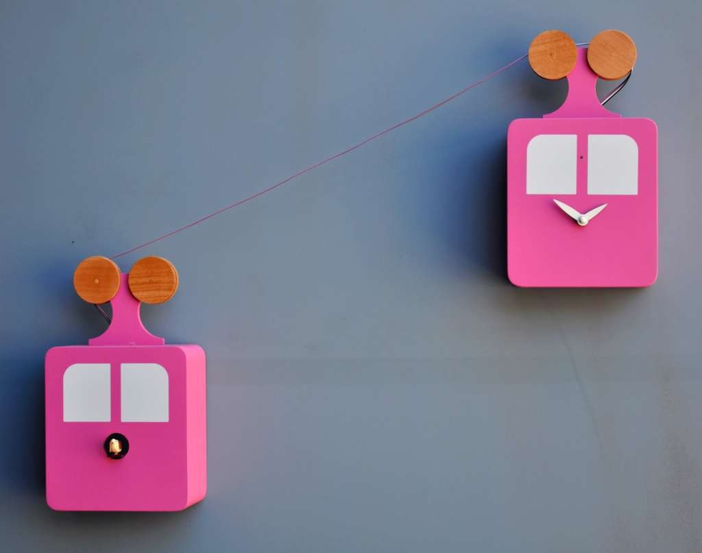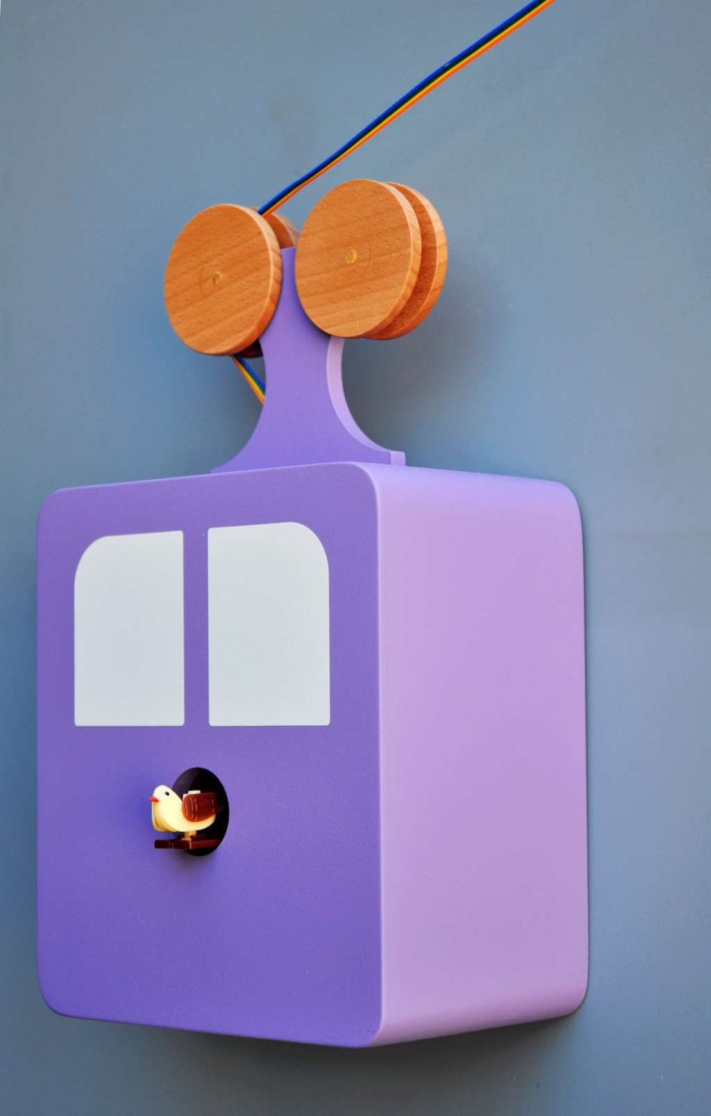 Cuckoo clock composed of two elements reproducing two cableway cabins