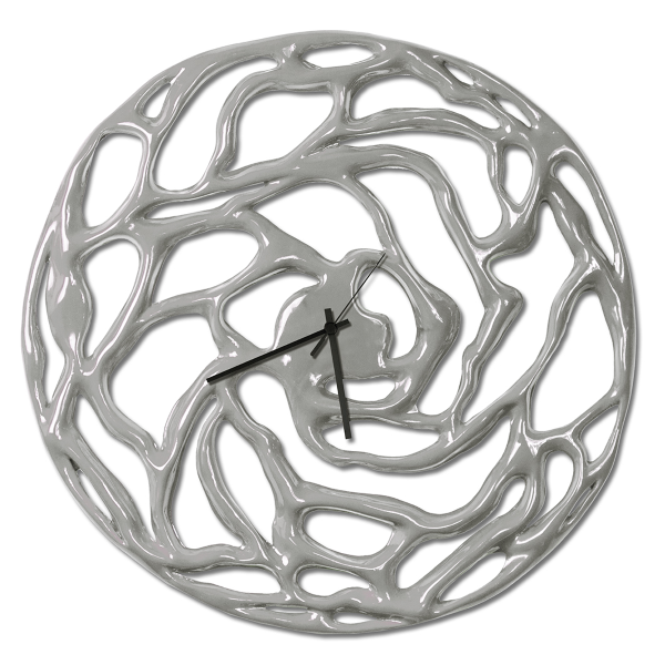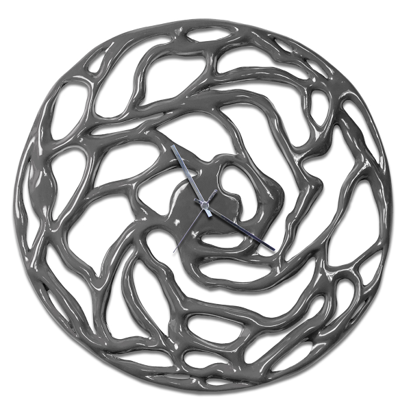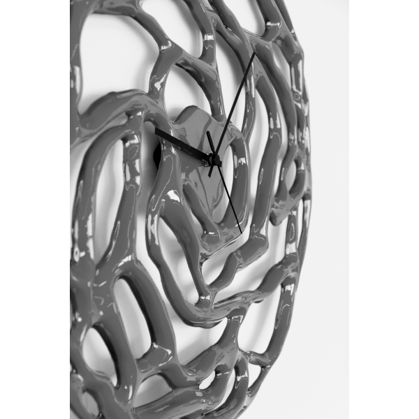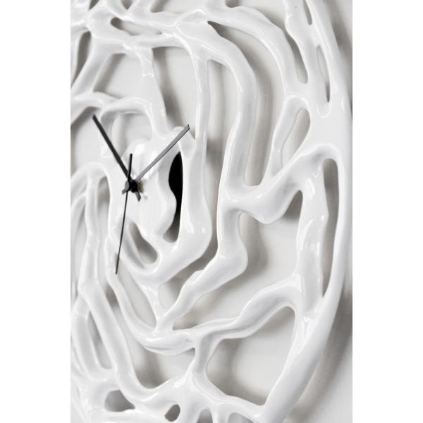 Perforated clock in lacquered composite ceramic, black or chromed hands, polished finish.