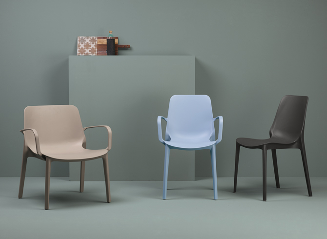 Available in surprising shades such as linen, dove grey and anthracite, which enhance the sinuous lines of the technopolymer.