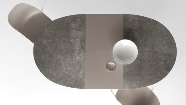 GIOVE extendable table, metal base with round top in wood, wood-ceramic or wood-glass.
