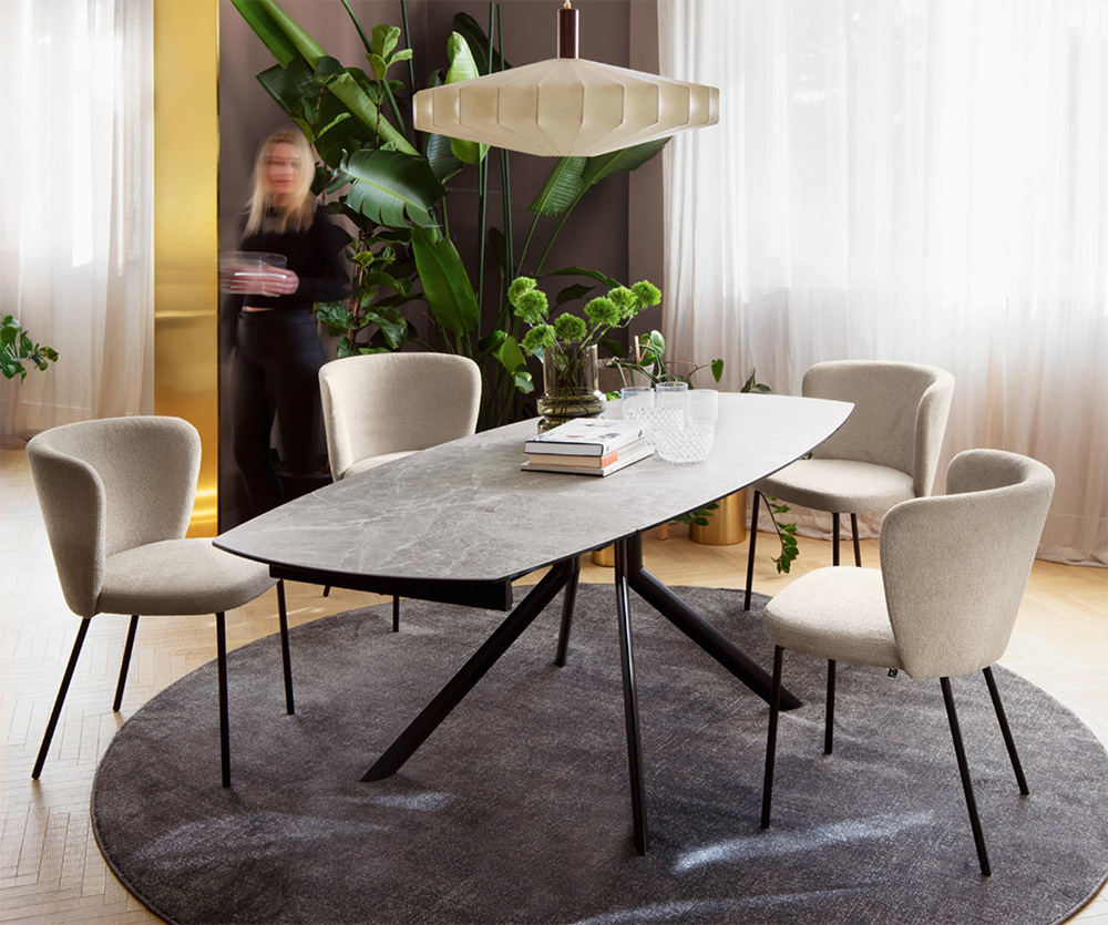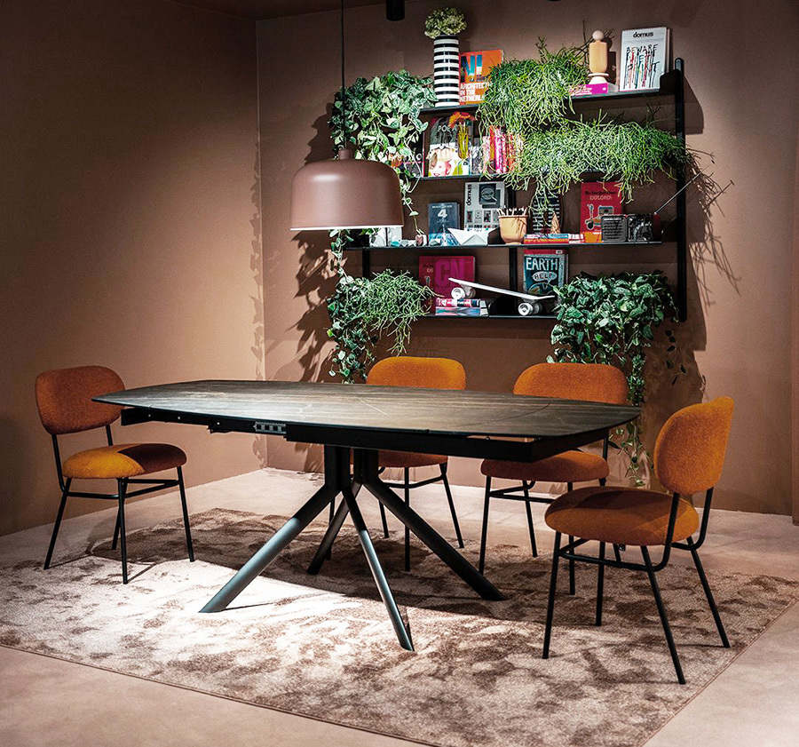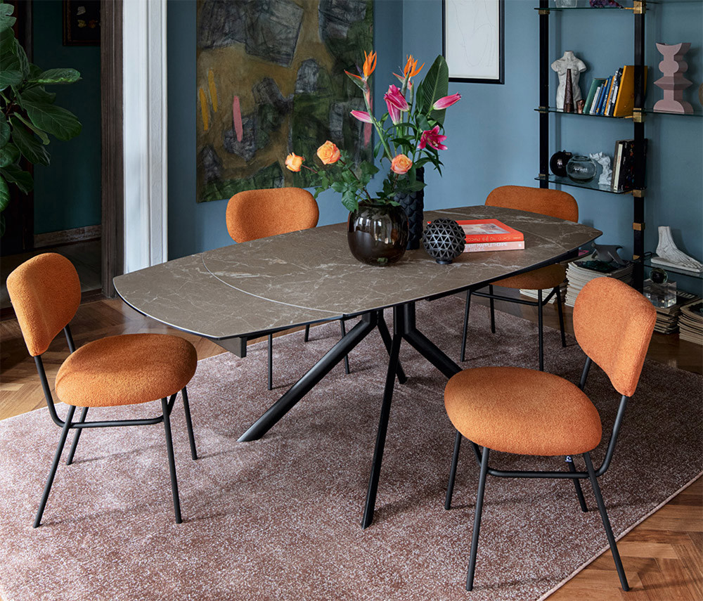 The Giove Plus table by Connubia is a designer extendable table that combines elegance, functionality, and innovation. Thanks to its automatic opening mechanism , the top extends smoothly and intuitively: a simple rotation provides a larger tabletop in just a few seconds, ideal for hosting friends and family.