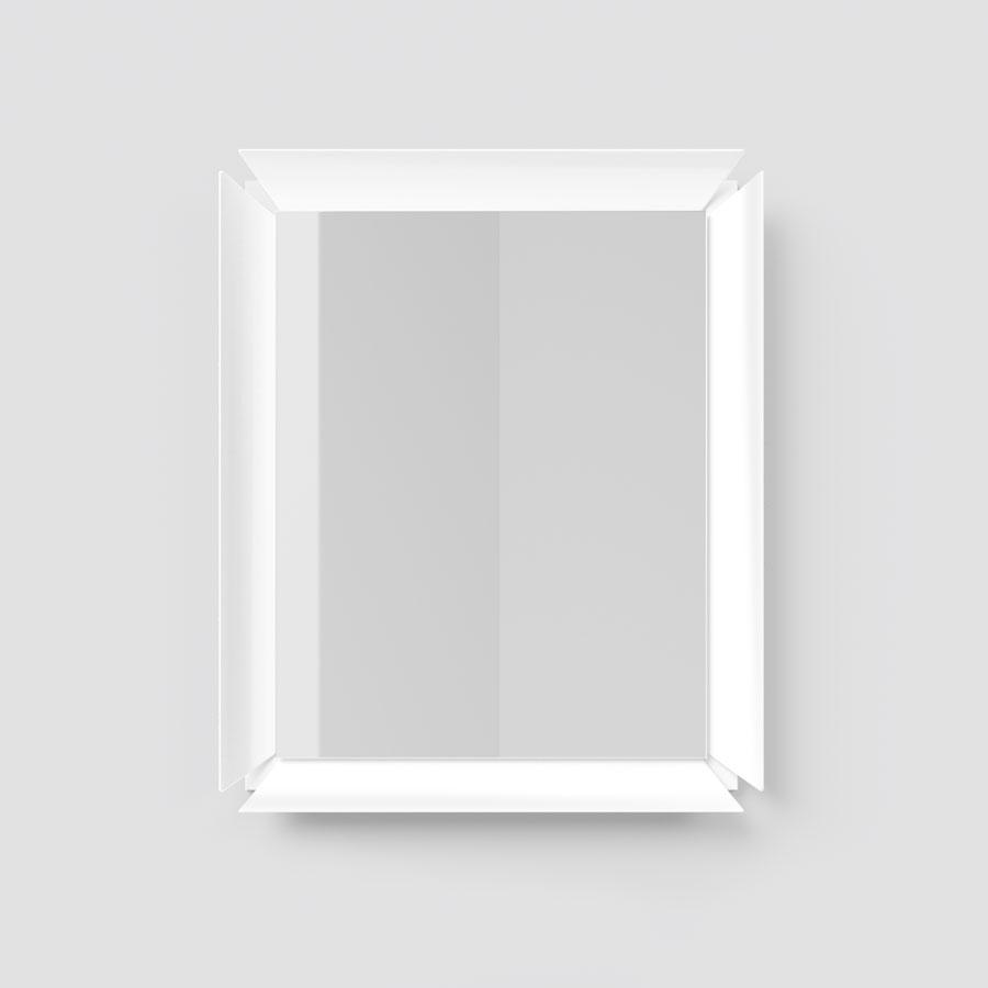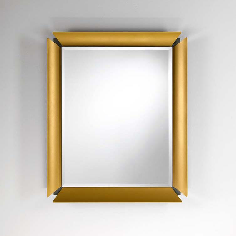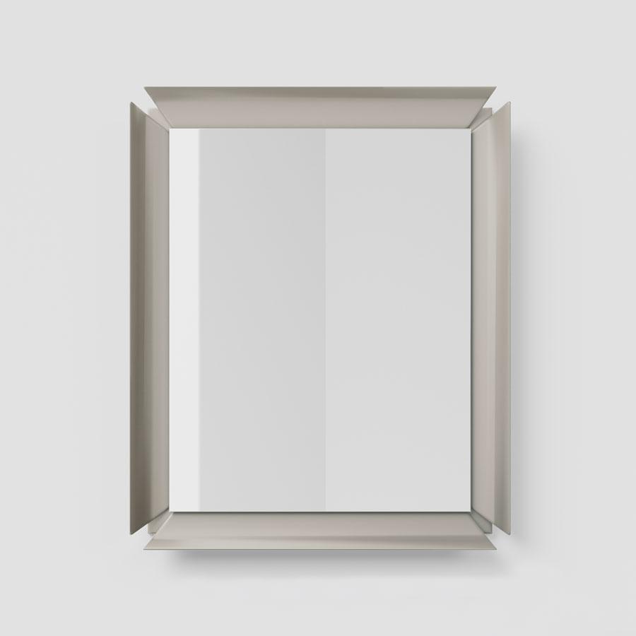 Wall mirror with matt lacquered aluminum frame, fixed to a colored laminate bottom.