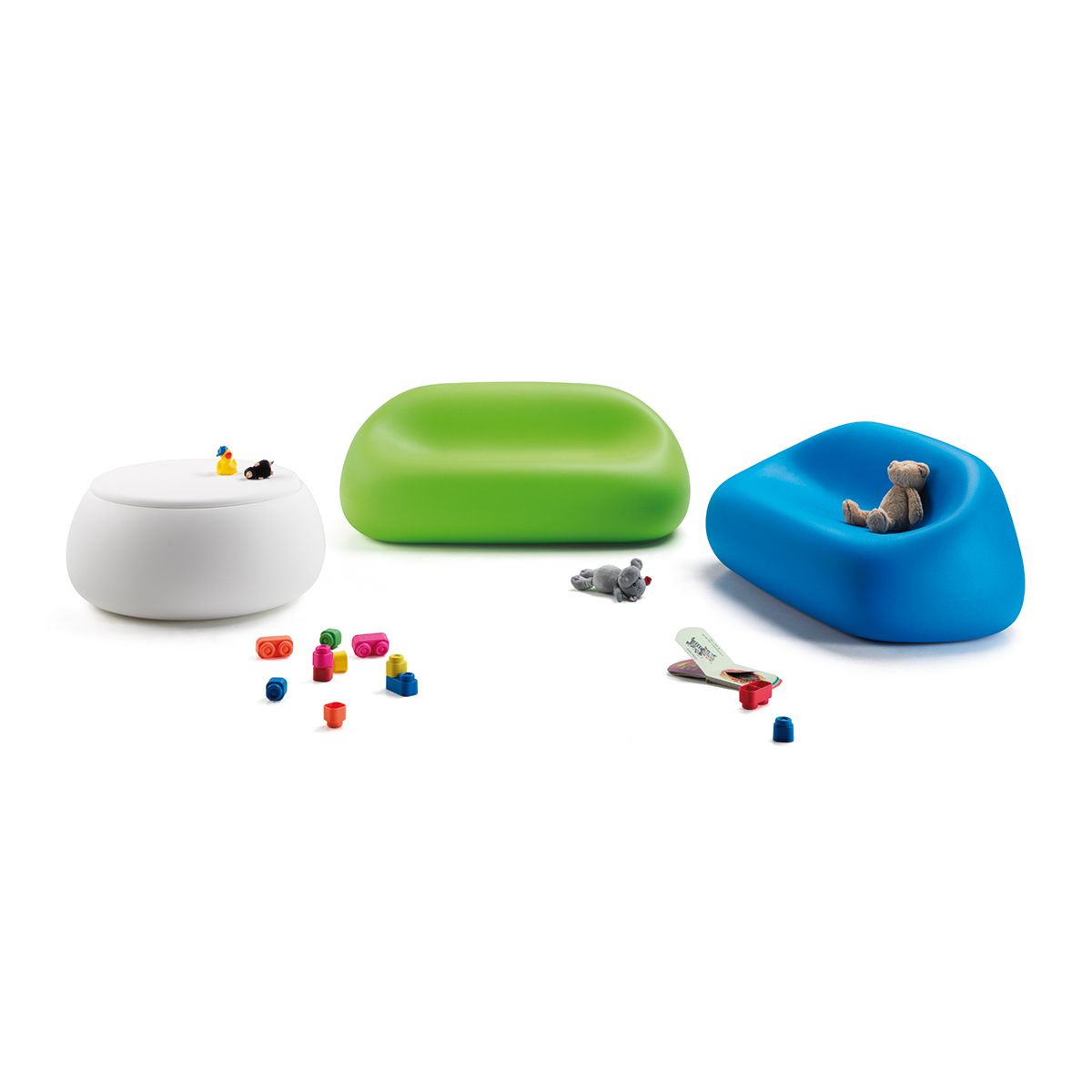 Three-seater sofa, combined with the "Gumball Junior" armchair to recreate safe, ergonomic and versatile play corners.