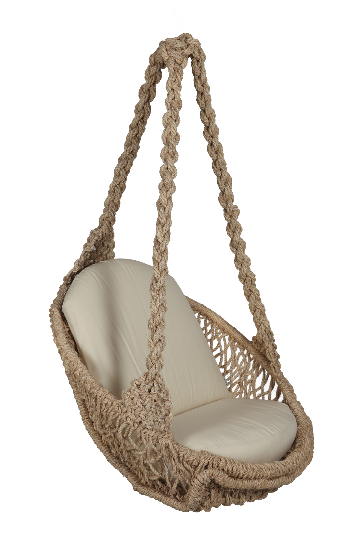 Single hanging armchair with cushion, hand woven natural fiber version. Dimensions: 159x90 cm (A2002)