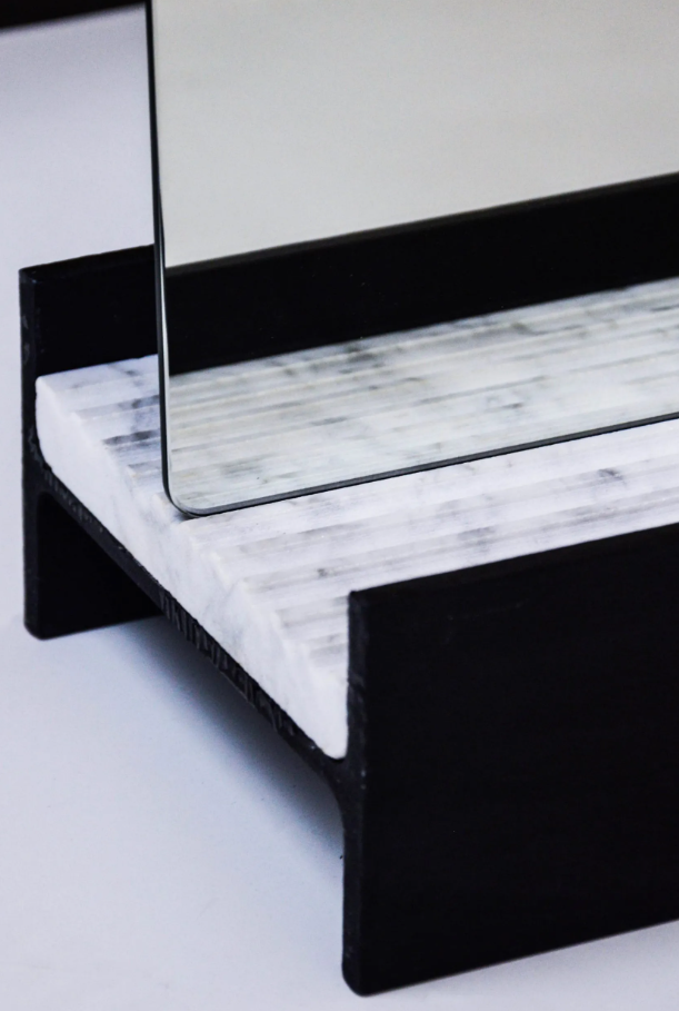 Iannis is a refined and contemporary floor mirror that combines steel and marble in a minimalist design.