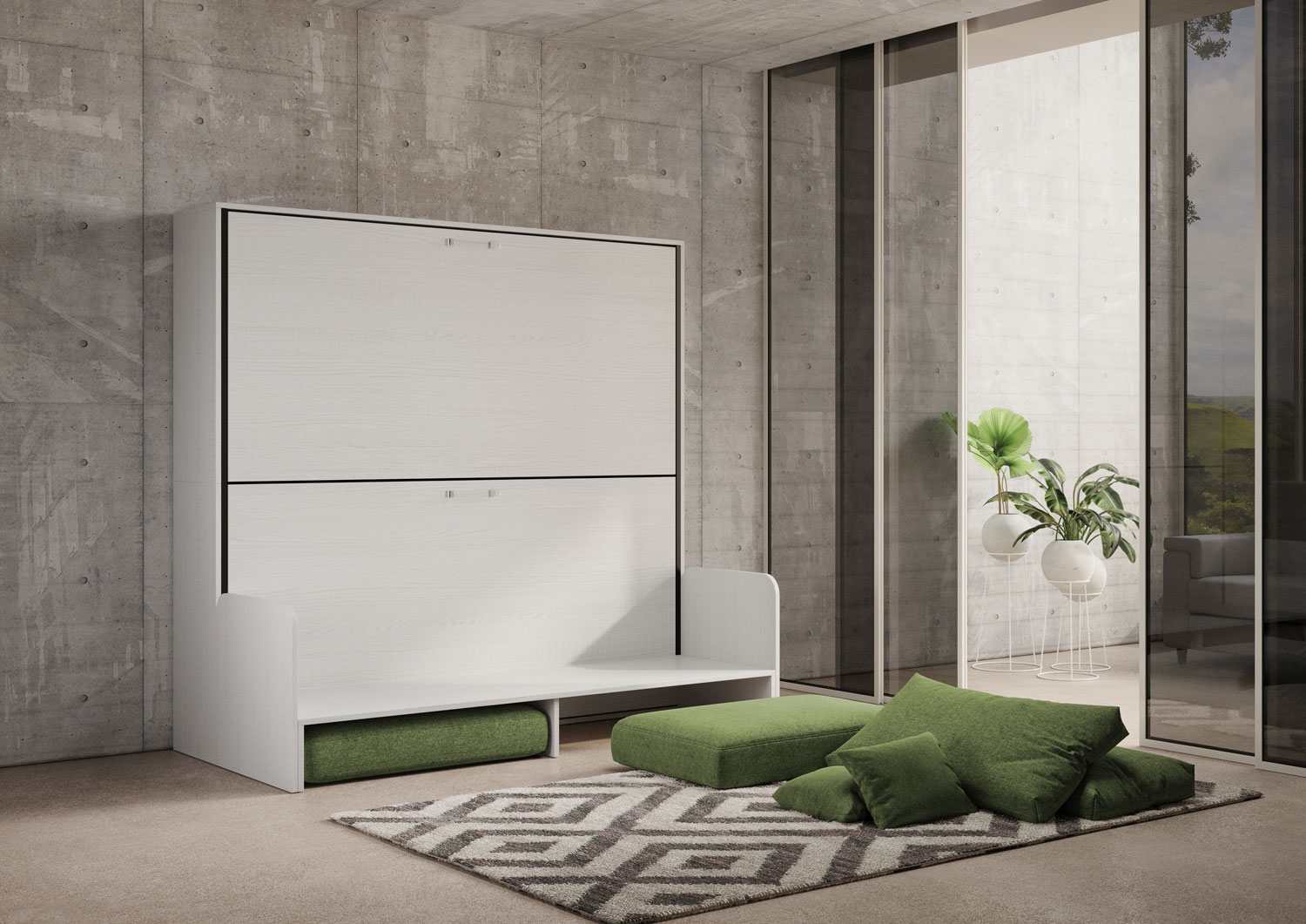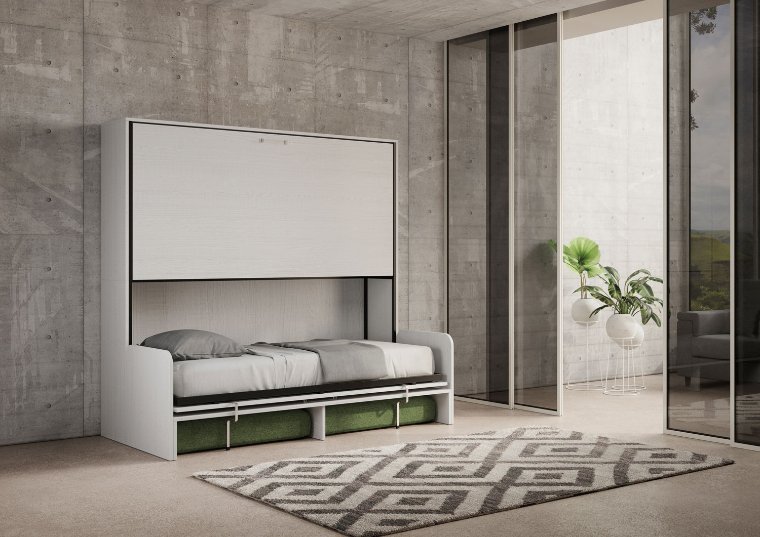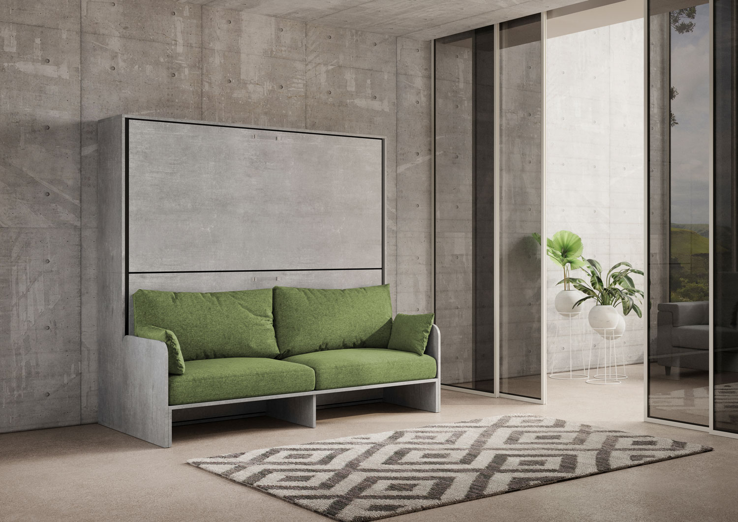 Material Horizontal folding bed Kando Sofà, version with two single bunk beds and a sofa. This space-saving furniture is ideal for the living area: it serves as a comfortable sofa during the day and quickly transforms into cozy beds when needed, offering both comf