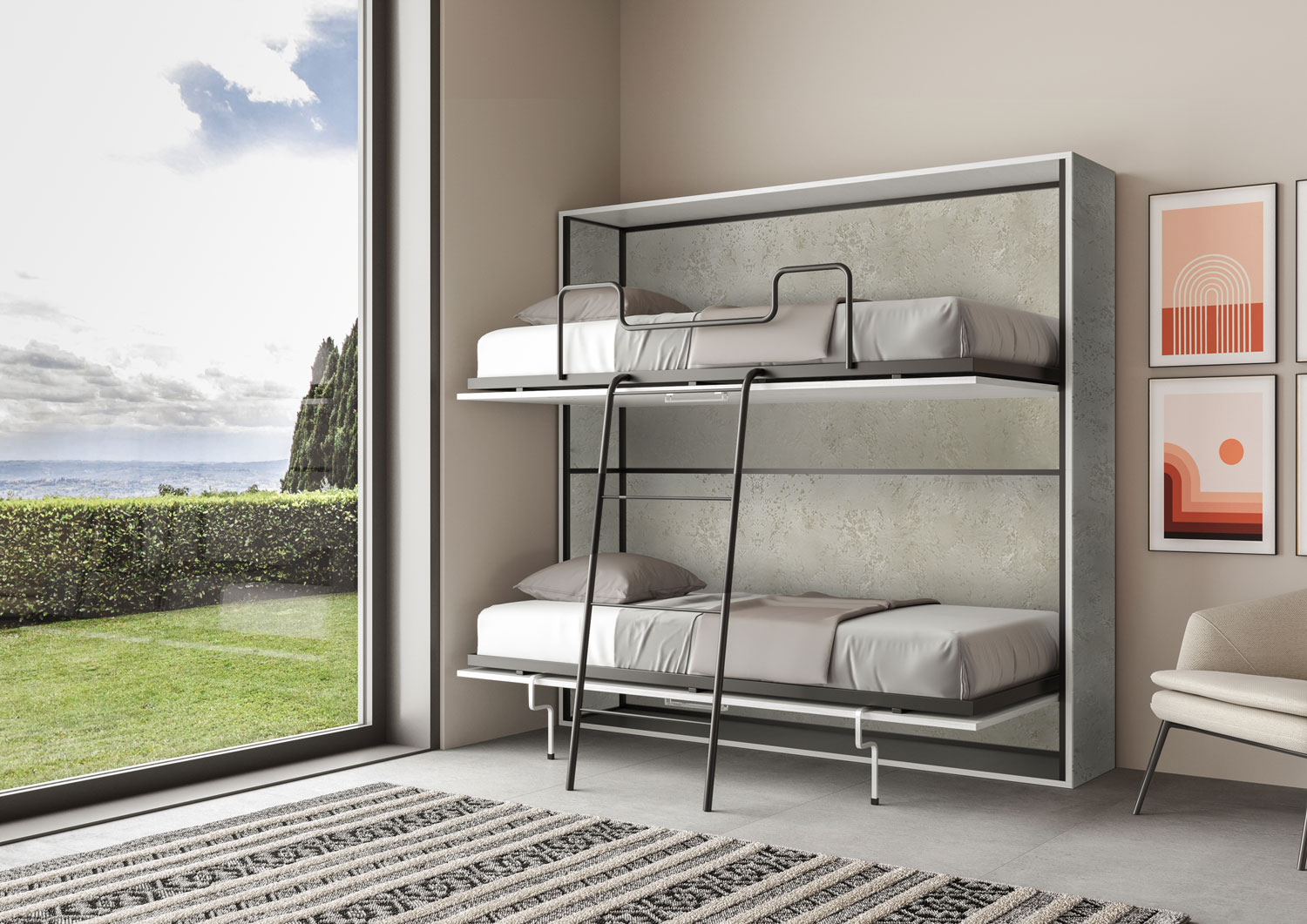 | Material | Kando Single 2x Foldaway bunk Bed. Kando foldaway bed, available in the bunk bed version with two single foldaway beds. A modern space saving solution perfect for any space need. The bulk bed foldaway solution allows to take advantage of every single cent |