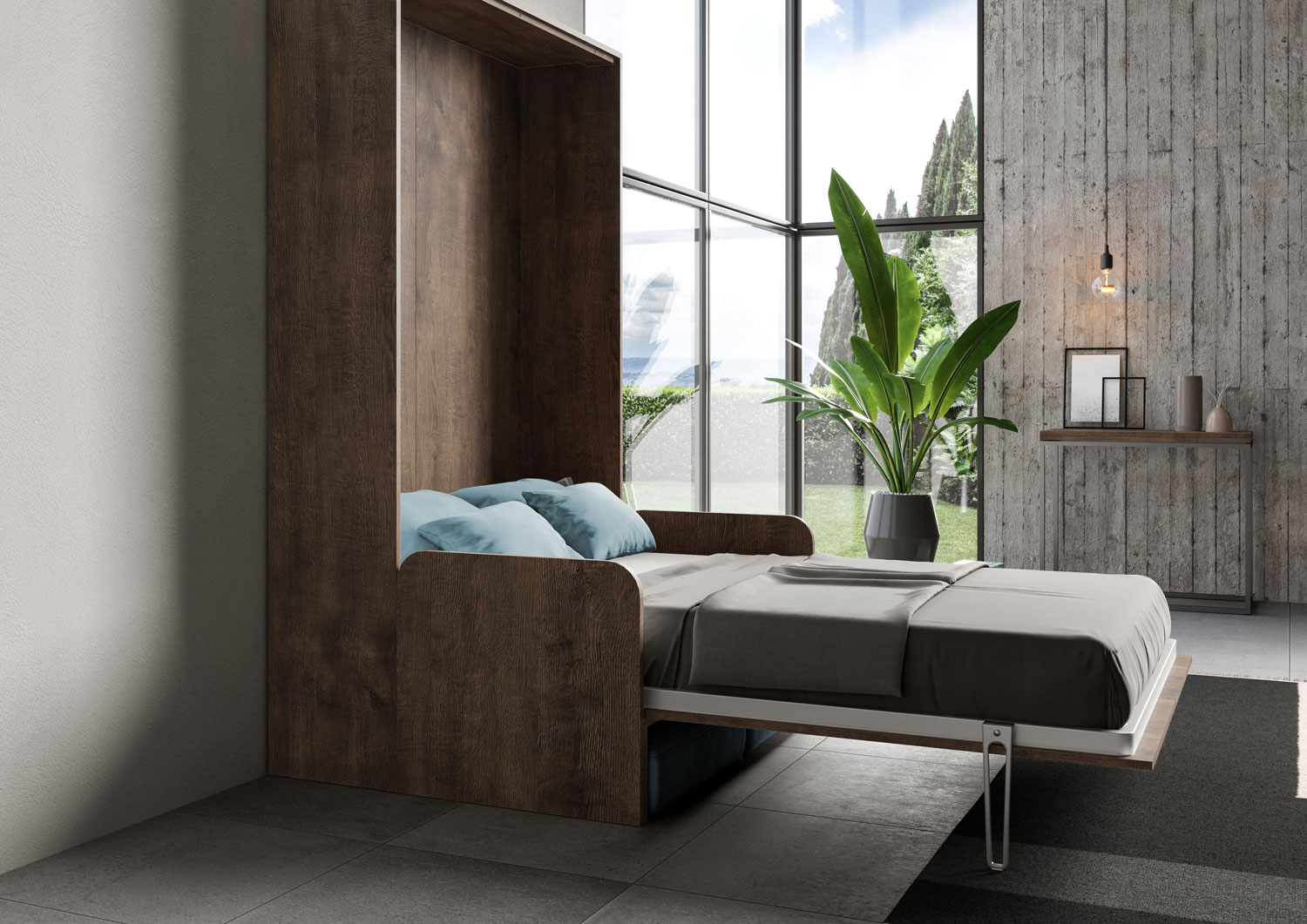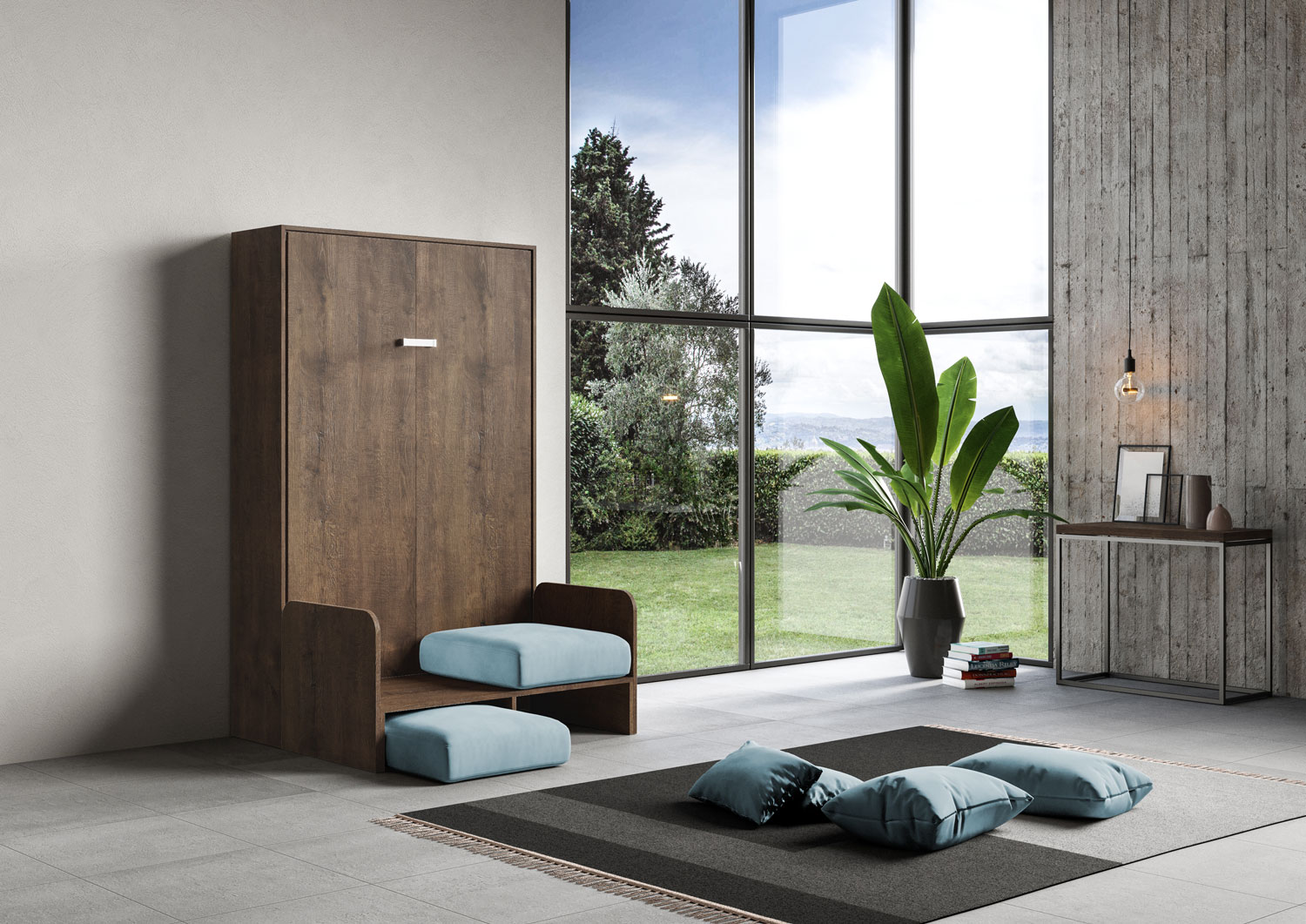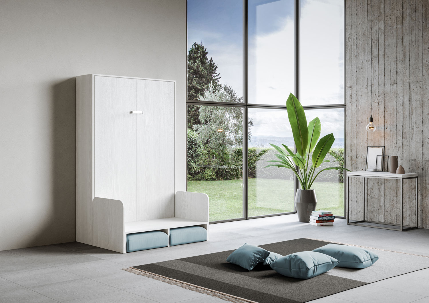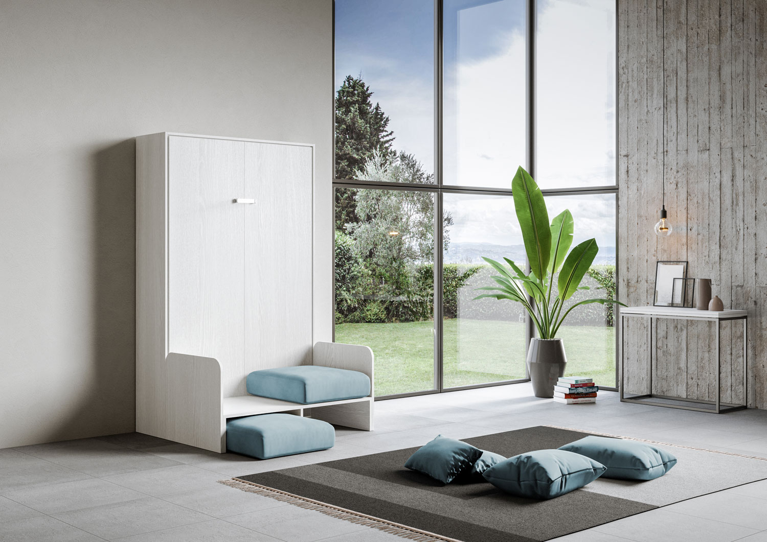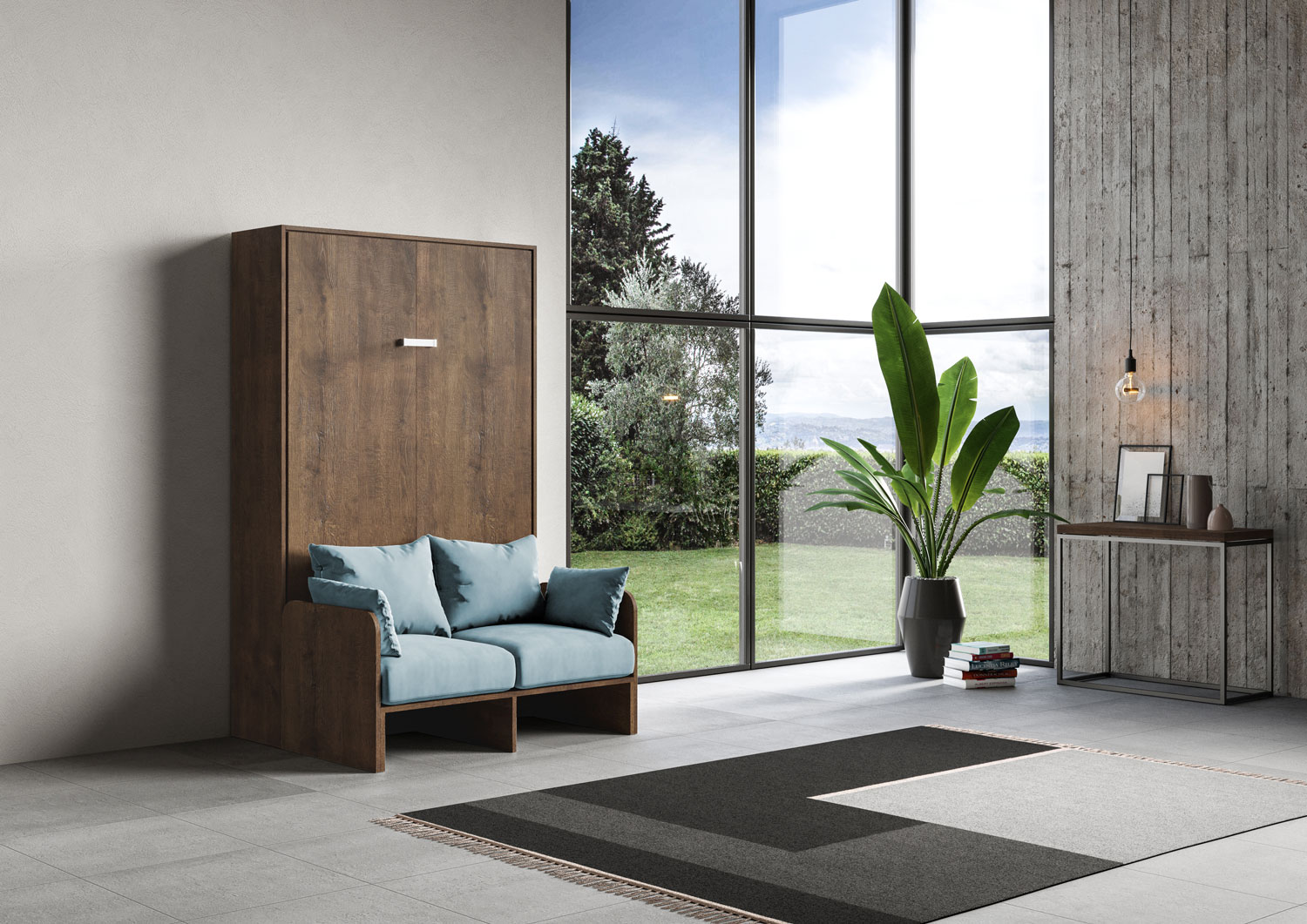 | Material | Kentaro Sofà vertical Foldaway Small Double Bed 120x190. Kentaro square and a half - small double vertical foldaway bed with practical sofa structure with comfortable soft cushions and pillows customizable in colour. Smart and practical solution for turni |