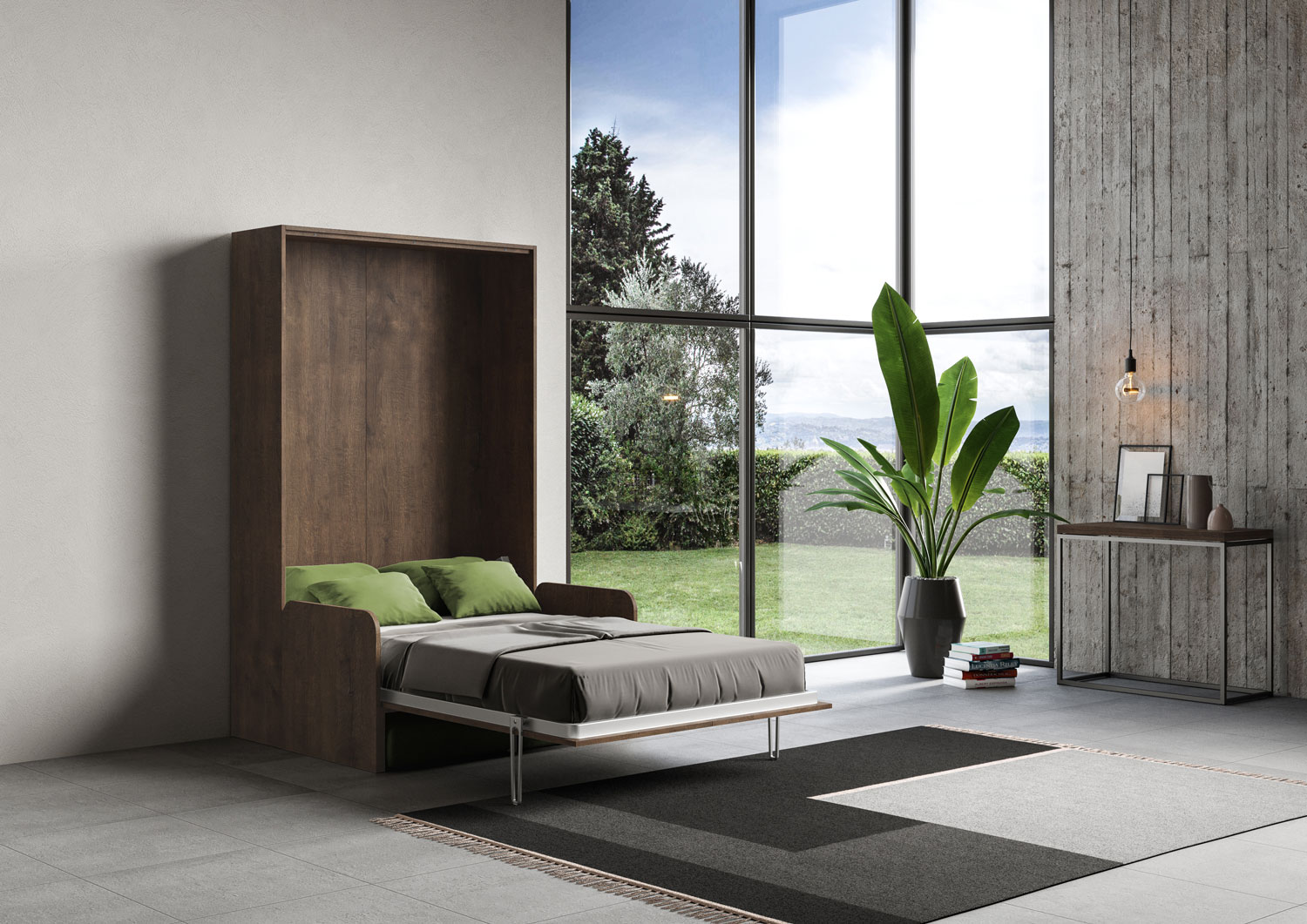 | Material | Kentaro Sofà vertical Foldaway Small Double Bed 120x190. Kentaro square and a half - small double vertical foldaway bed with practical sofa structure with comfortable soft cushions and pillows customizable in colour. Smart and practical solution for turni |