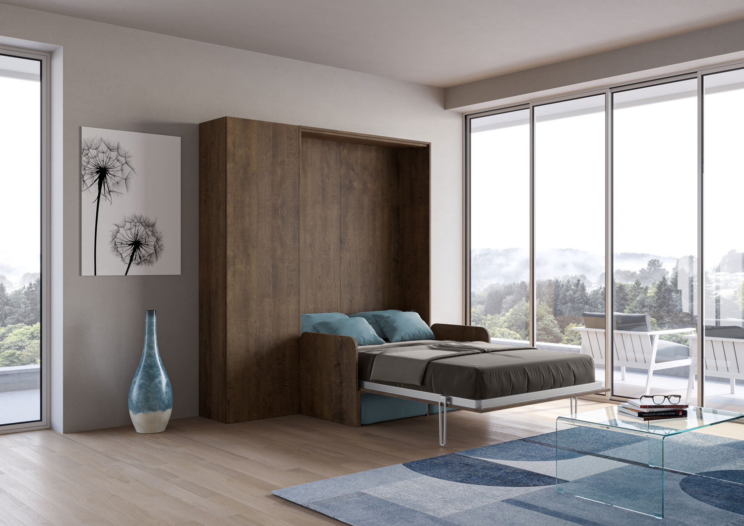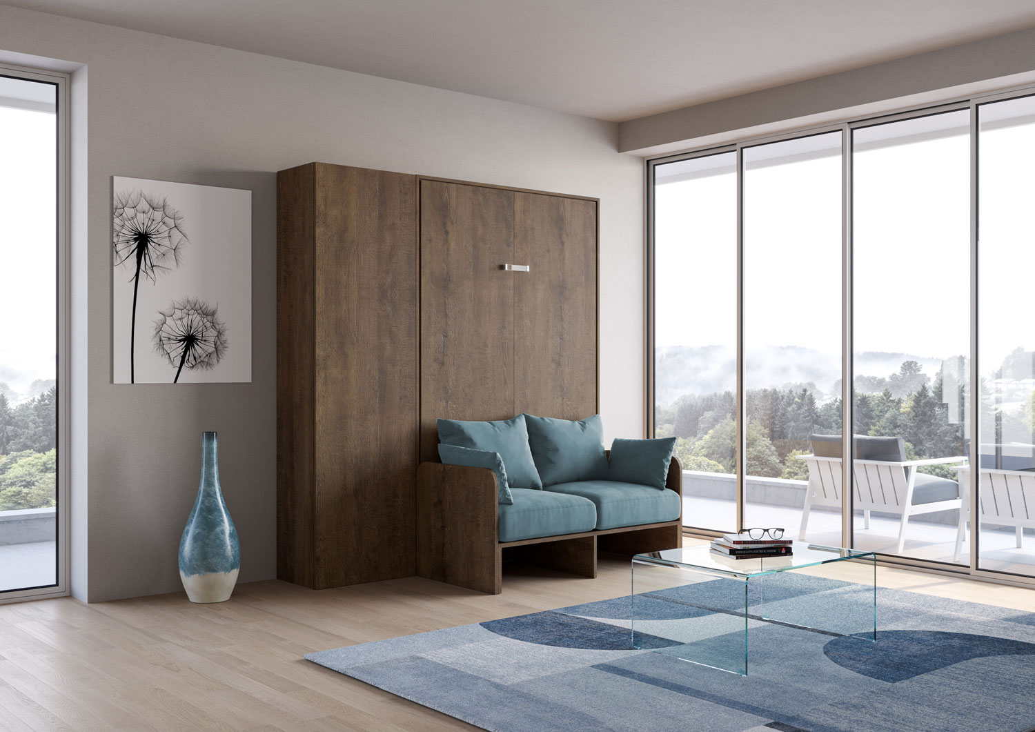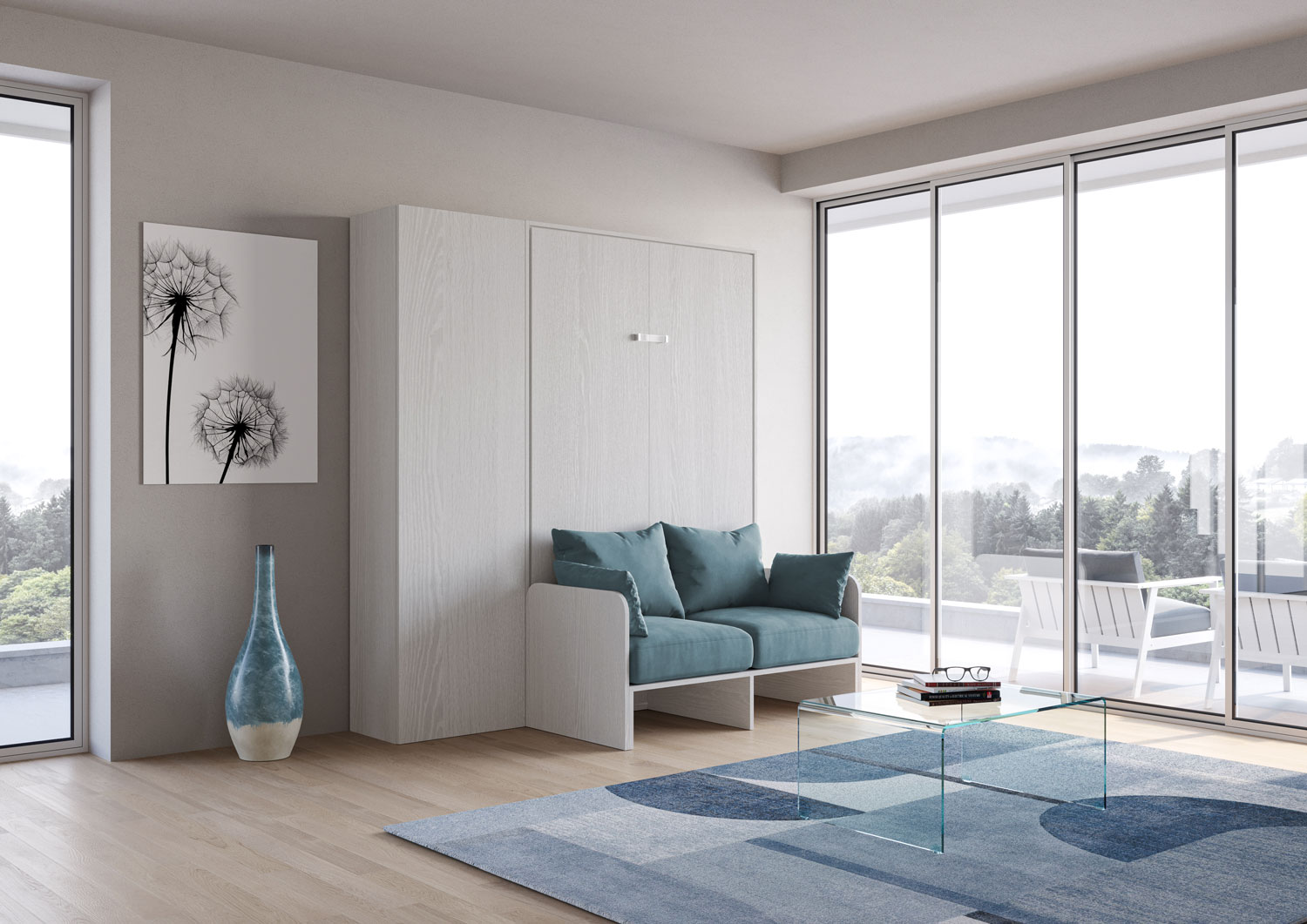 | Material | Vertical foldaway French size Bed with sofa and Isoka Column cabinet. Composition which includes the Kentaro vertical foldaway French size bed with sofa with cushions and pillows, together with Isoka column cabinet. The column cabinet can be placed left o |