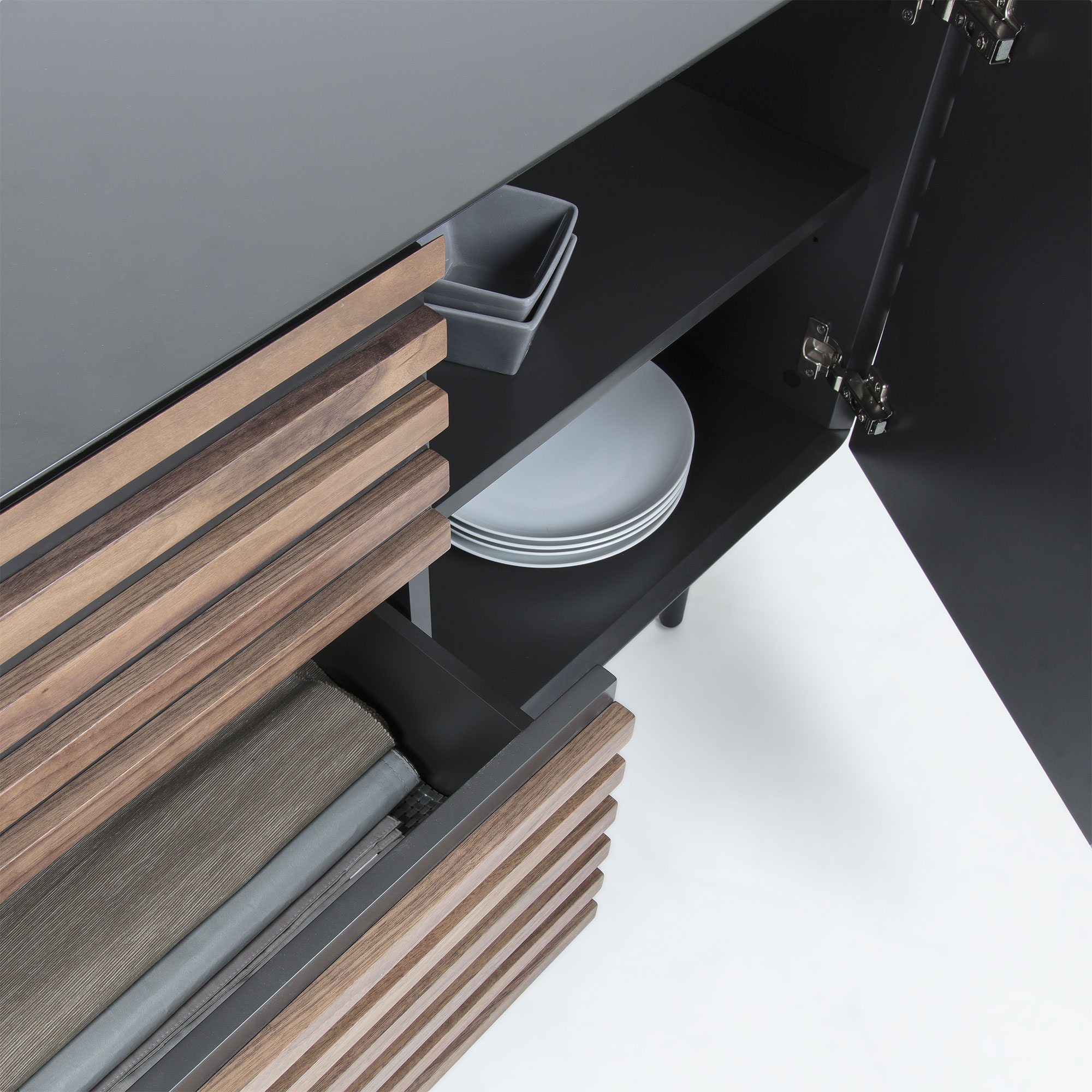 | Material | 72% MDF E0 (medium density fibreboard with low formaldehyde emissions class E0), 14% Steel, 14% Walnut veneer (Juglans nigra) |