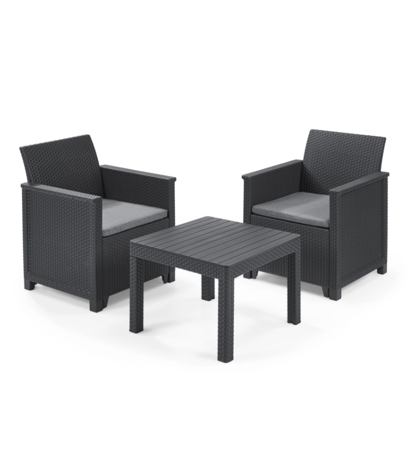 The Emma balcony set by Keter is the perfect choice for those who want to furnish small outdoor spaces such as balconies, terraces or verandas with simplicity and elegance.