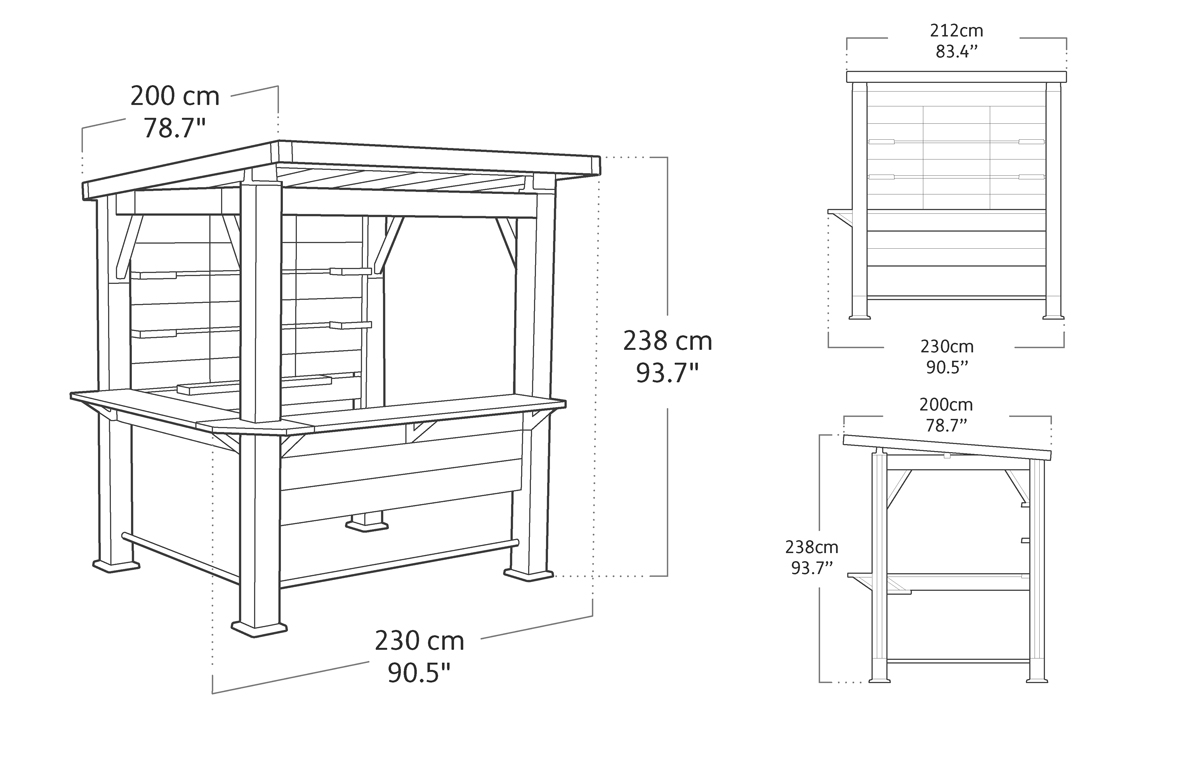 Transform your garden into the perfect space for parties, cocktails, and relaxing moments with friends and family. Made of wood-effect DecoCoat resin, it is weather-resistant, UV-resistant, and requires little maintenance. The reinforced metal tubing and sturdy feet ensure stability and durability, offering protection from sun, rain, and snow year-round.
