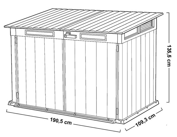 Thanks to its sturdy wood-effect resin structure , it is perfect for storing waste bins, garden tools, barbecues, outdoor furniture or bicycles , protecting them from rain, sun and humidity.