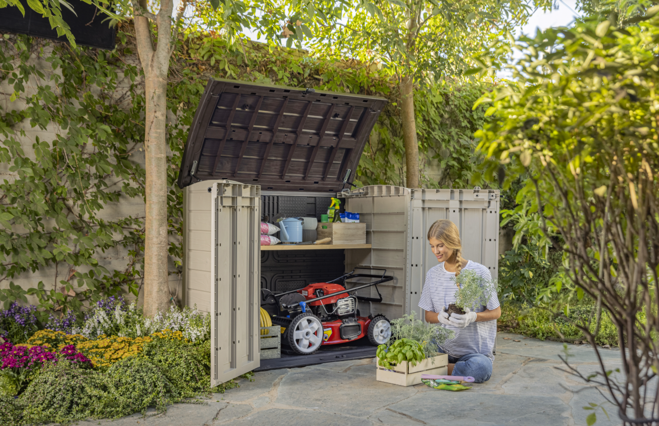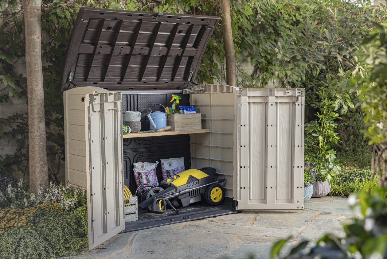 The Keter Store-It-Out ARC Tool Shed is a space-saving solution perfect for storing 240L bins, garden tools, outdoor cushions or small furniture.