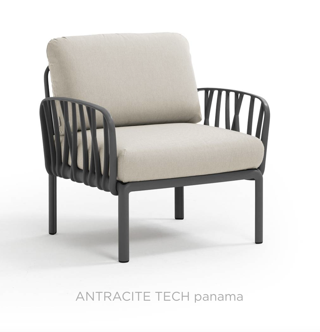 Modular seating system configurable as desired. Product to be assembled. Produced in Italy. STRUCTURE: polypropylene fiberglass treated anti-UV and colored in the mass. Backrests and armrests that can be attached to all sides of the seat. Removable. Matte finish. Equipped with non-slip feet. Recyclable resin. CUSHIONS: Removable / zip. Seat cushion 18 cm thick, equipped with buttons. Back cushion 22 cm thick, equipped with hooks.