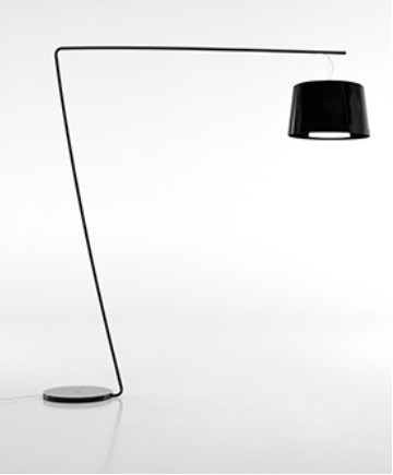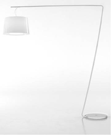 Floor lamp with base in white or black painted steel and pedal ignition. The double polycarbonate diffuser diffuses the light creating an ethereal atmosphere.