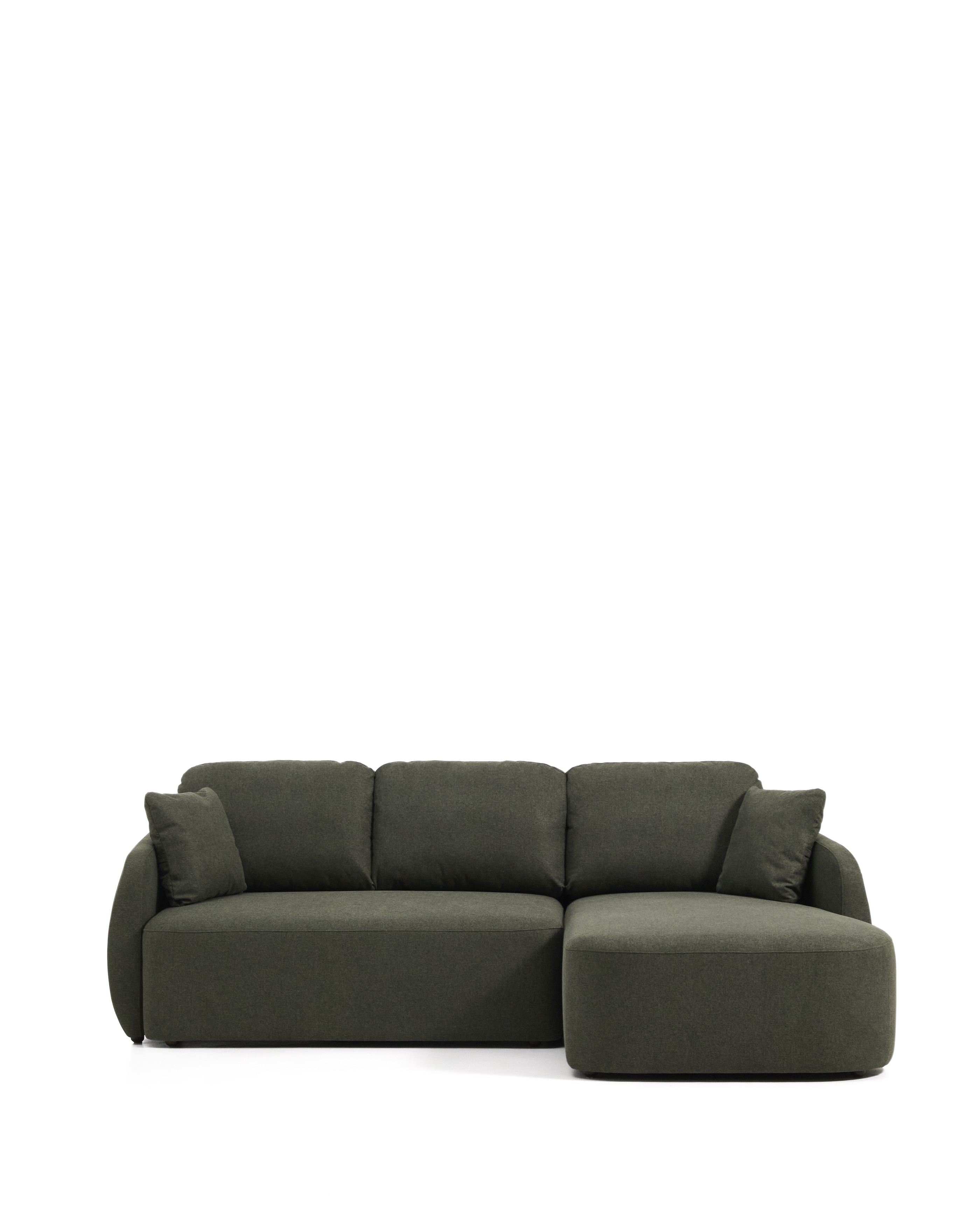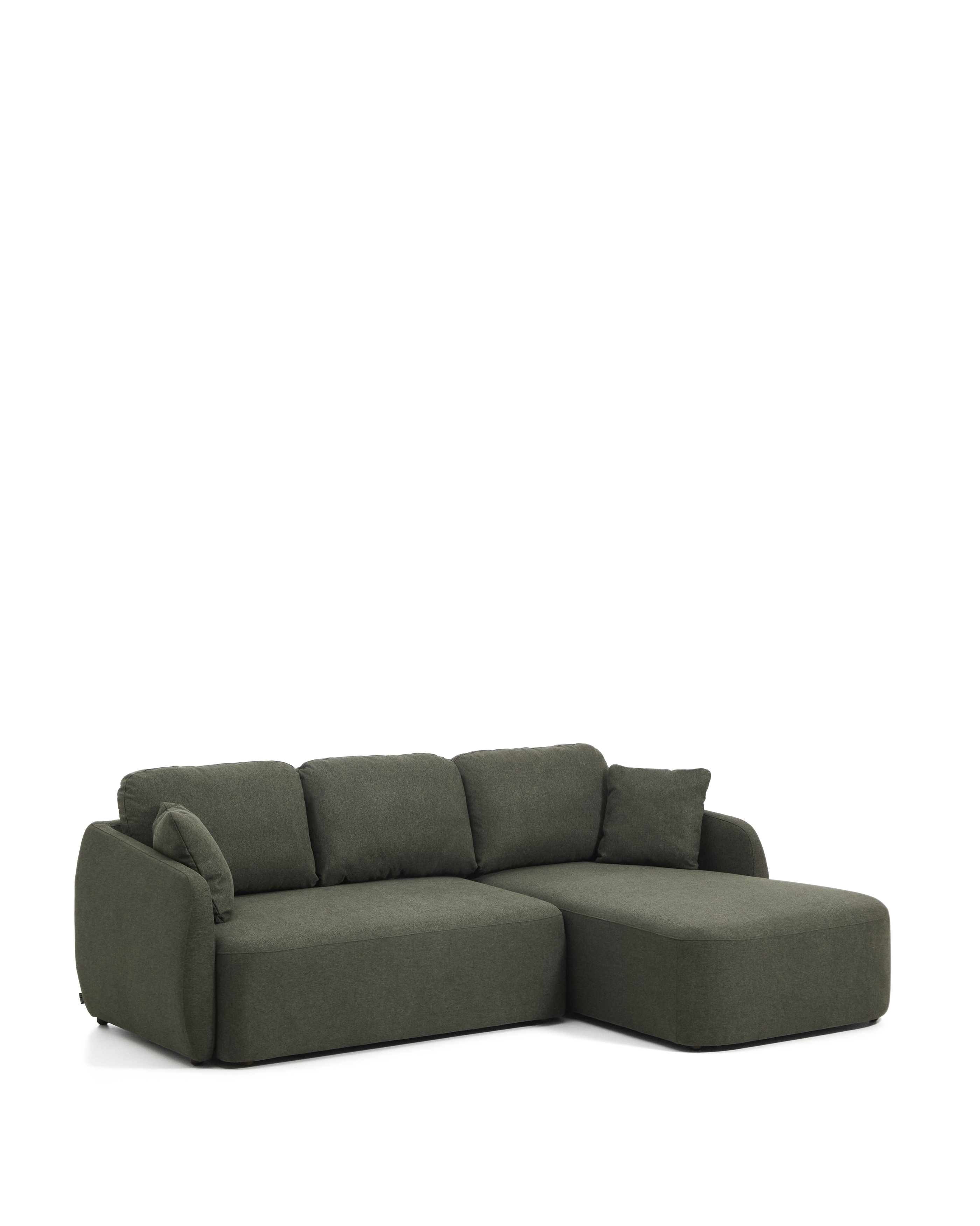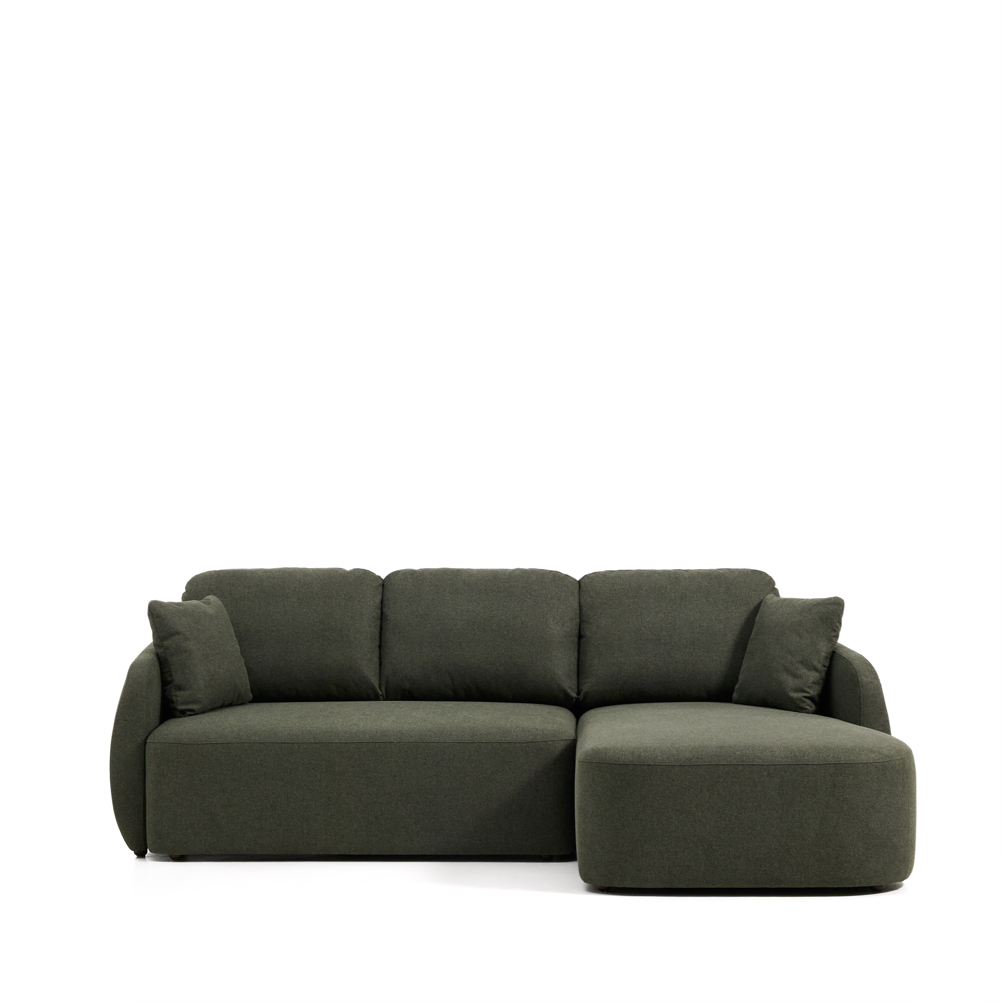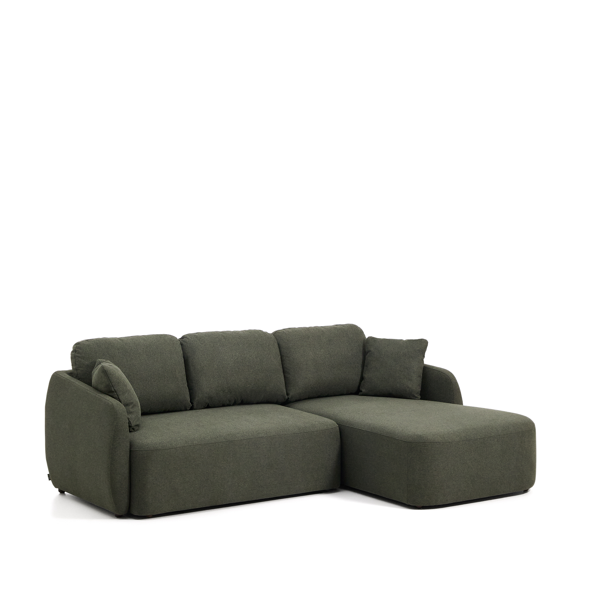 Laira 3-seater sofa bed in dark green chenille with right chaise longue 246 cm FSC Mix Credit
