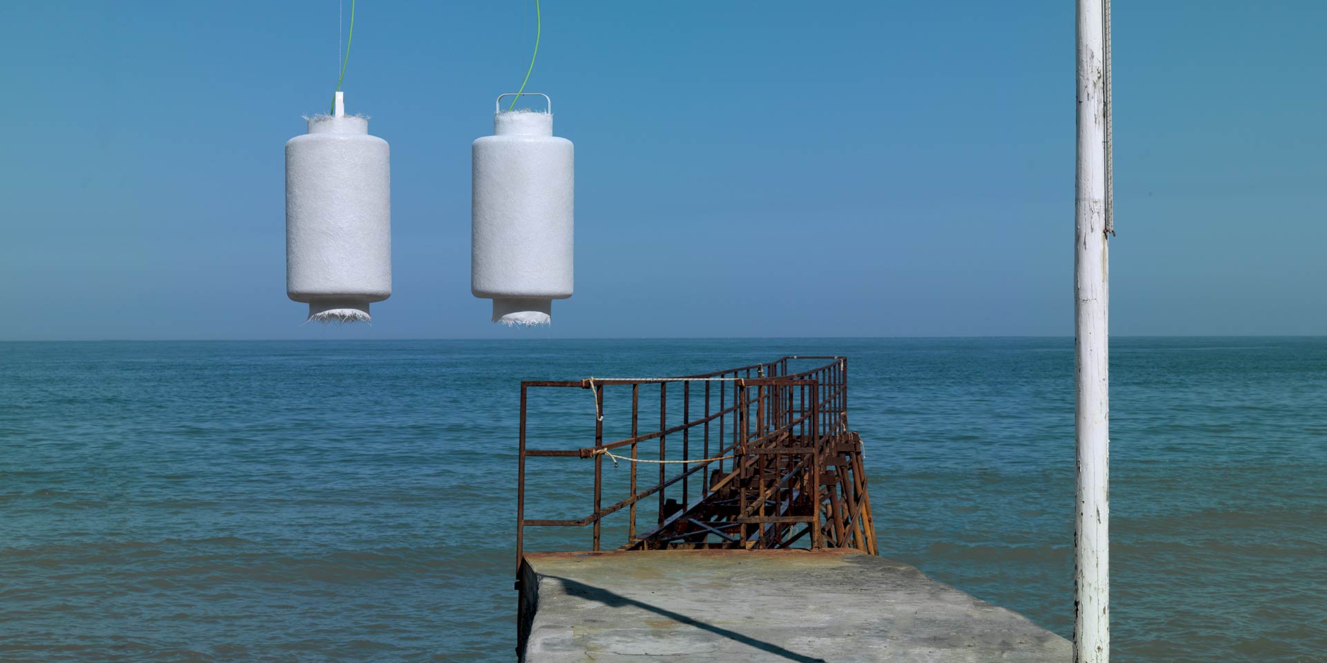 Kimono has a white fiberglass body, a steel suspension rope mt. 2, transparent/green electric cable 2/5 m long and is available in the following dimensions: