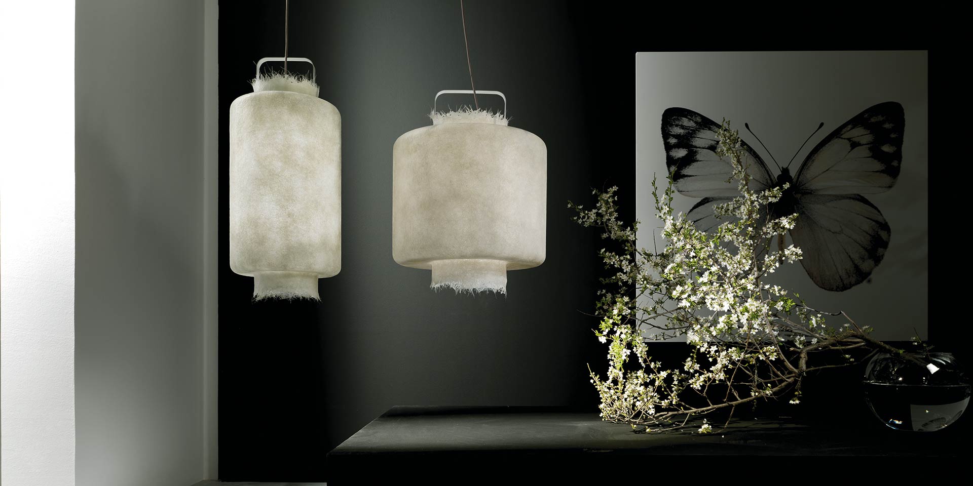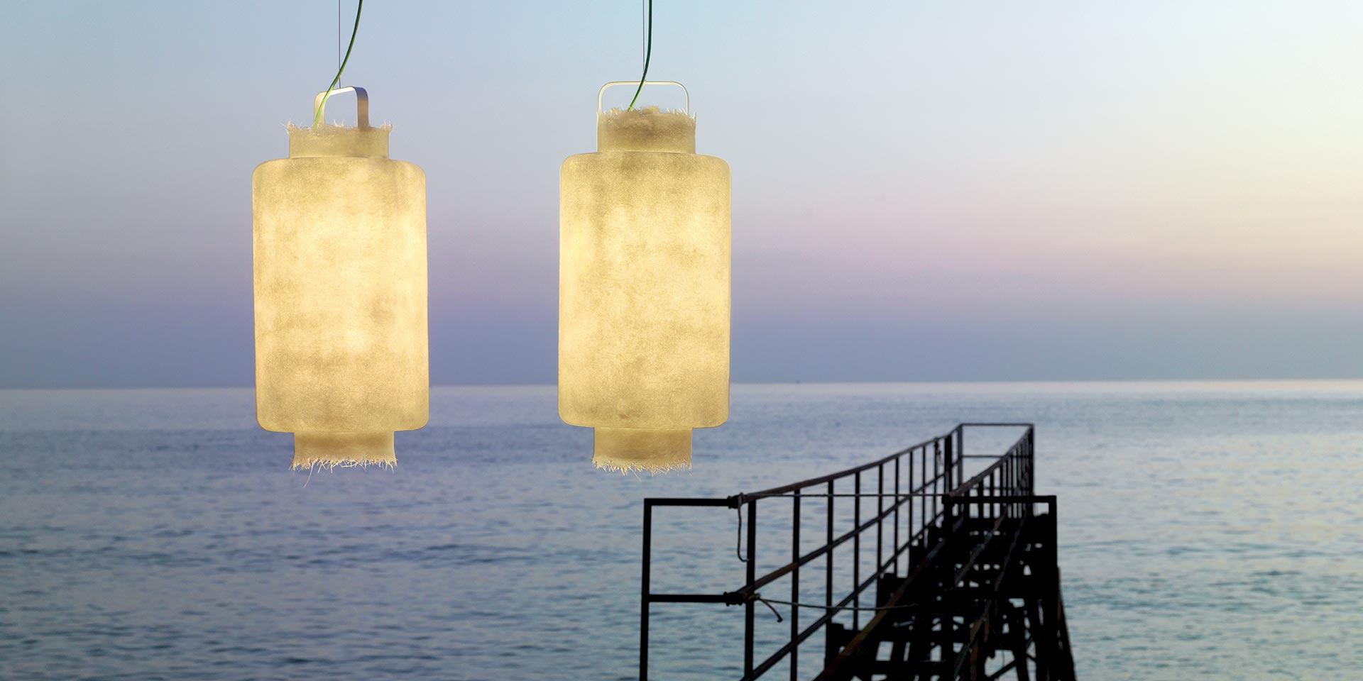 Kimono Karman, an outdoor suspension with a warm and full light, a lantern that fascinates the eye and holds the light, with its shape it seems to merge with the air that surrounds it. KIMONO, a suspension for indoors and outdoors able to furnish your garden with a truly original and safe touch, thanks to the IP65 degree of protection.