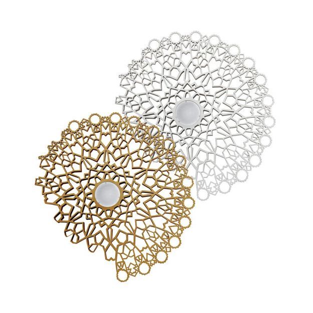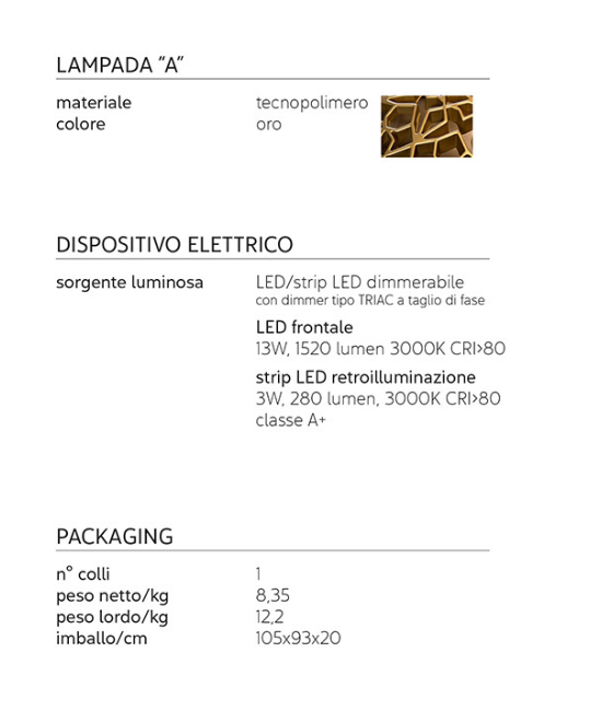 Evoking the fascination of natural light that radiates through the rose windows of Gothic cathedrals... Present and future, form and light coexist in Notredame: the poetic guise hides a technological soul, awakening very ancient emotions. Notredame is tinged with gold to become the protagonist of even the most elegant and sophisticated environments. The new colour, thanks to the metallic reflections, emphasizes the effects of light between the solids and voids of its three-dimensional texture.