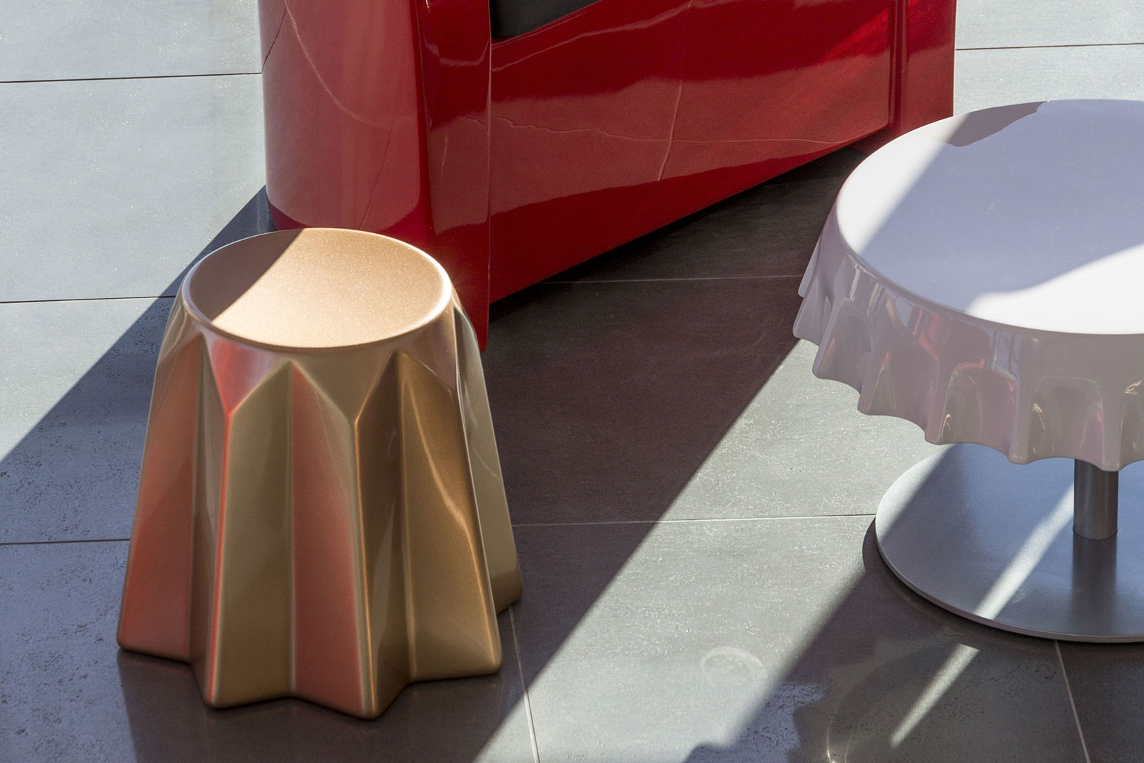 Pandoro is the ideal stool for warming up Christmas evenings, thanks to its distinctive and charming pandoro shape. The eclectic designer Gianni Arnaudo continues the food-themed design theme with Pandoro, as he did with his Teatime product: elements of traditional Italian cuisine become unusual design objects. Pandoro can thus add a special and bright touch of color, or an elegant lacquered finish, for festive evenings.If you are not satisfied with your purchase, making a return is really easy.
