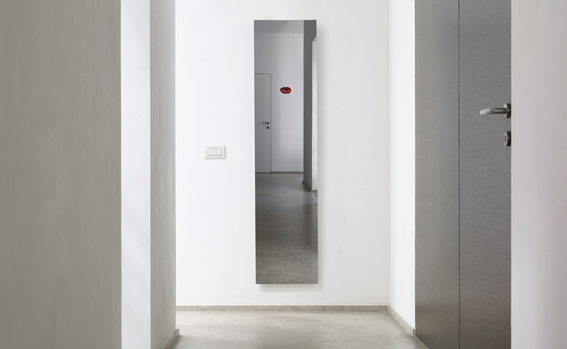Lipstick is a mirror designed by Bruno Rainaldi for Opinion Ciatti. Mirror with red silk-screen detail.