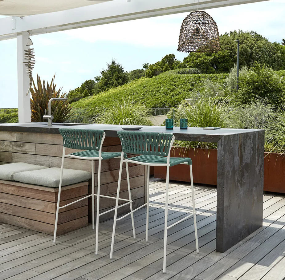 The Lisa Filò stool stands out for its elegant nautical rope weave that characterizes the seat and backrest, giving it a unique and contemporary design.
