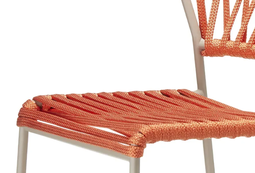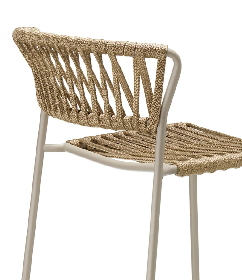 The Lisa Filò stool stands out for its elegant nautical rope weave that characterizes the seat and backrest, giving it a unique and contemporary design.