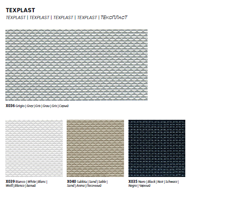 Seat and backrest material: Texplast