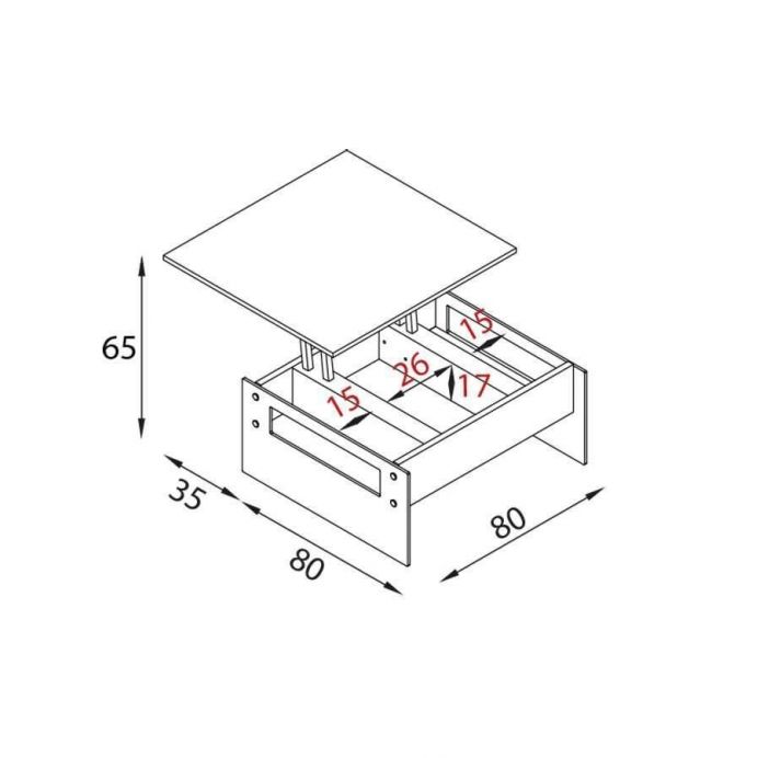 The mechanism allows you to lift the top by 25 cm and move it forward by 35 cm, adapting to different usage needs.