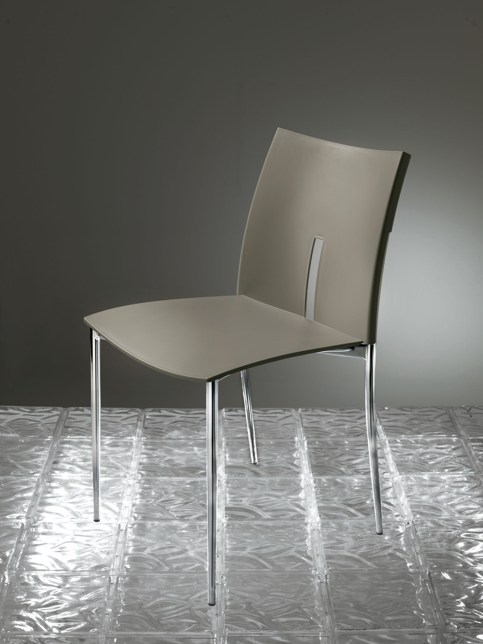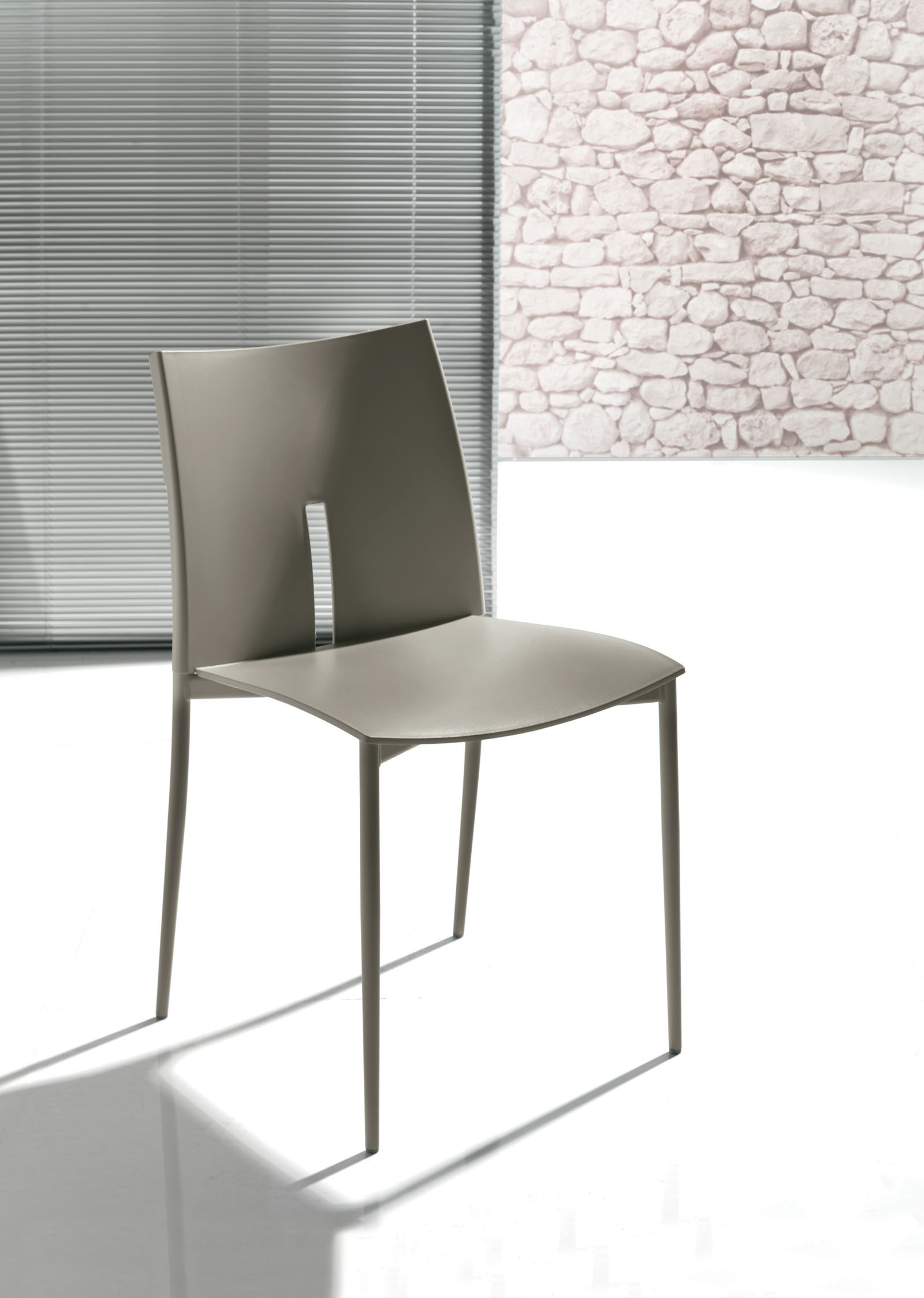 Chair with lacquered steel structure, seat and back in polypropylene.