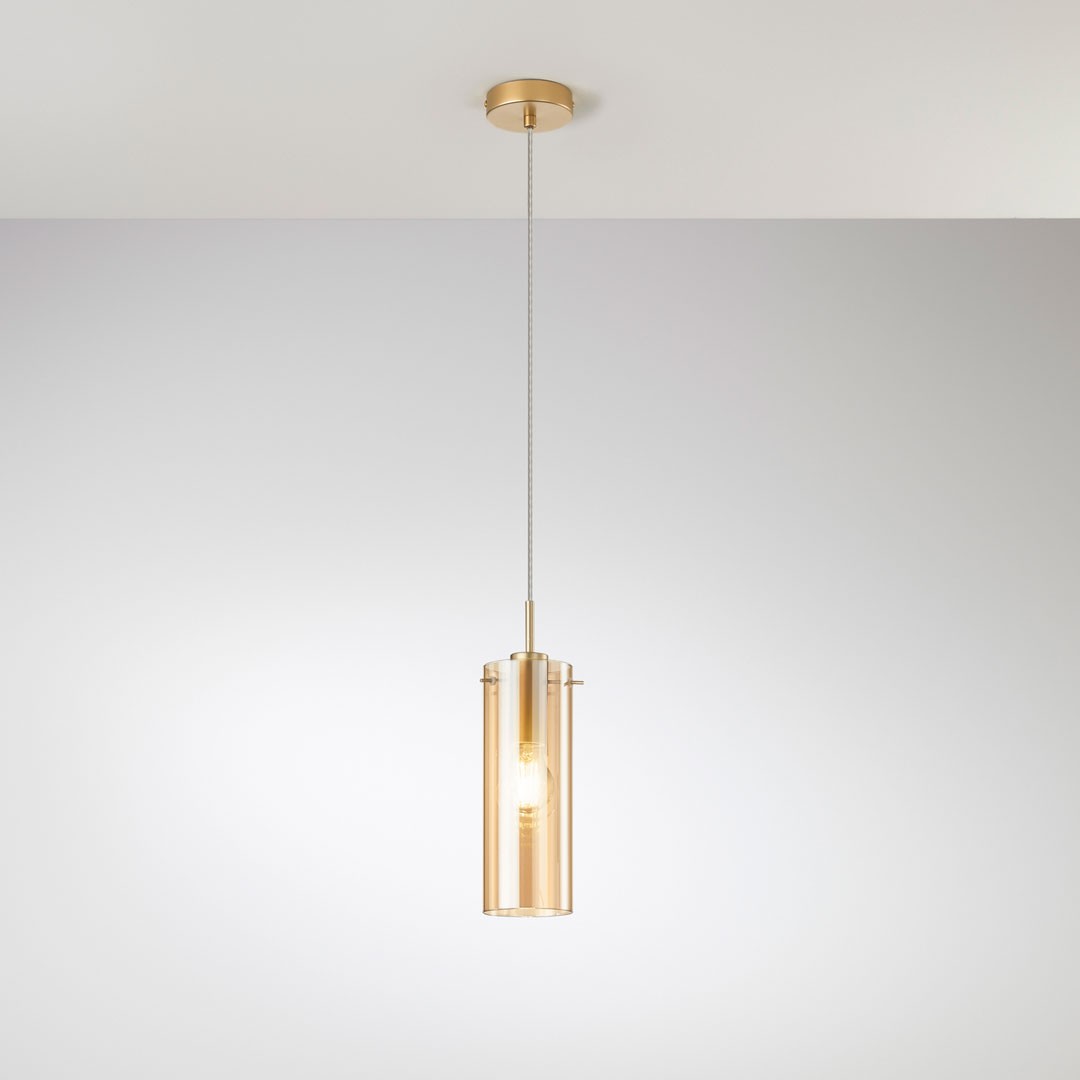 Magic Pendant Light Gold/Amber 1xE27 10x150 cm : Elegant and modern pendant lamp with gold finish and amber glass. Ideal for the living room, dining room, or kitchen, compatible with E27 bulbs, it creates a warm and refined lighting that enhances any space.