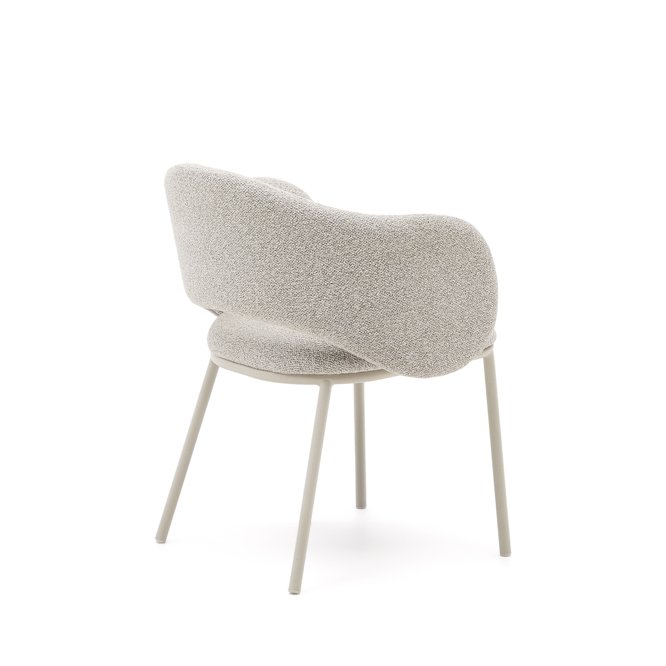 Maina chair in thick beige chenille and steel legs with beige finish FSC Mix Credit