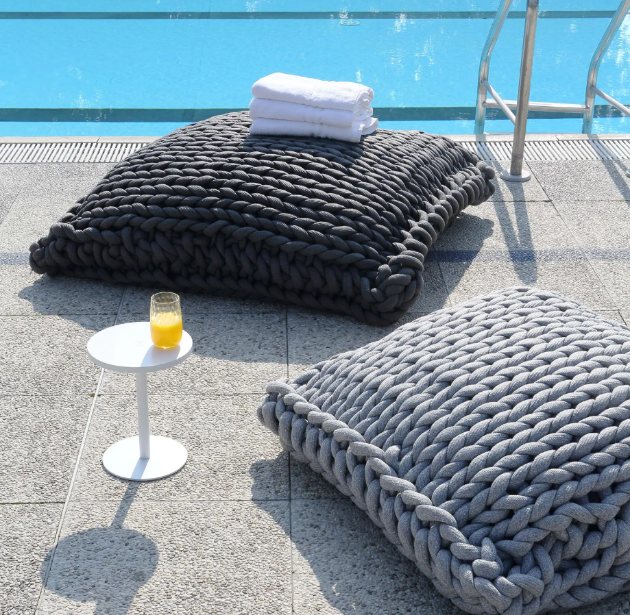 ROXY is a maxi cushion handcrafted with hand-knotted rope, designed for generous comfort and bold style.