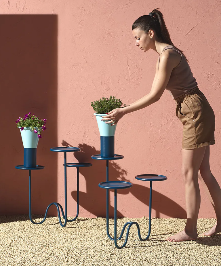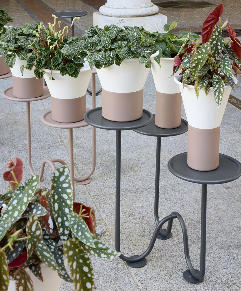 Mimosa is a floor planter with a graphic and contemporary design, designed to add a delicate yet bold decorative touch to interiors.