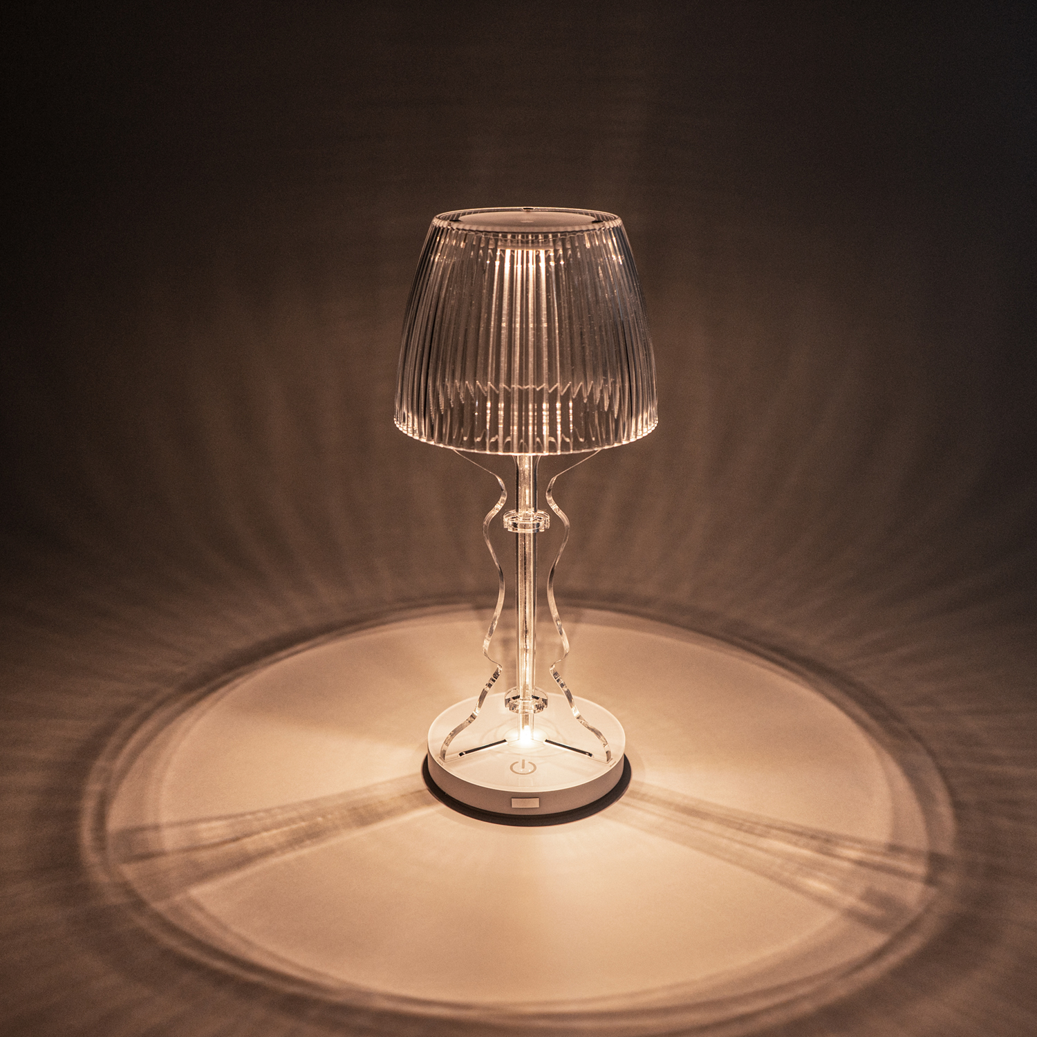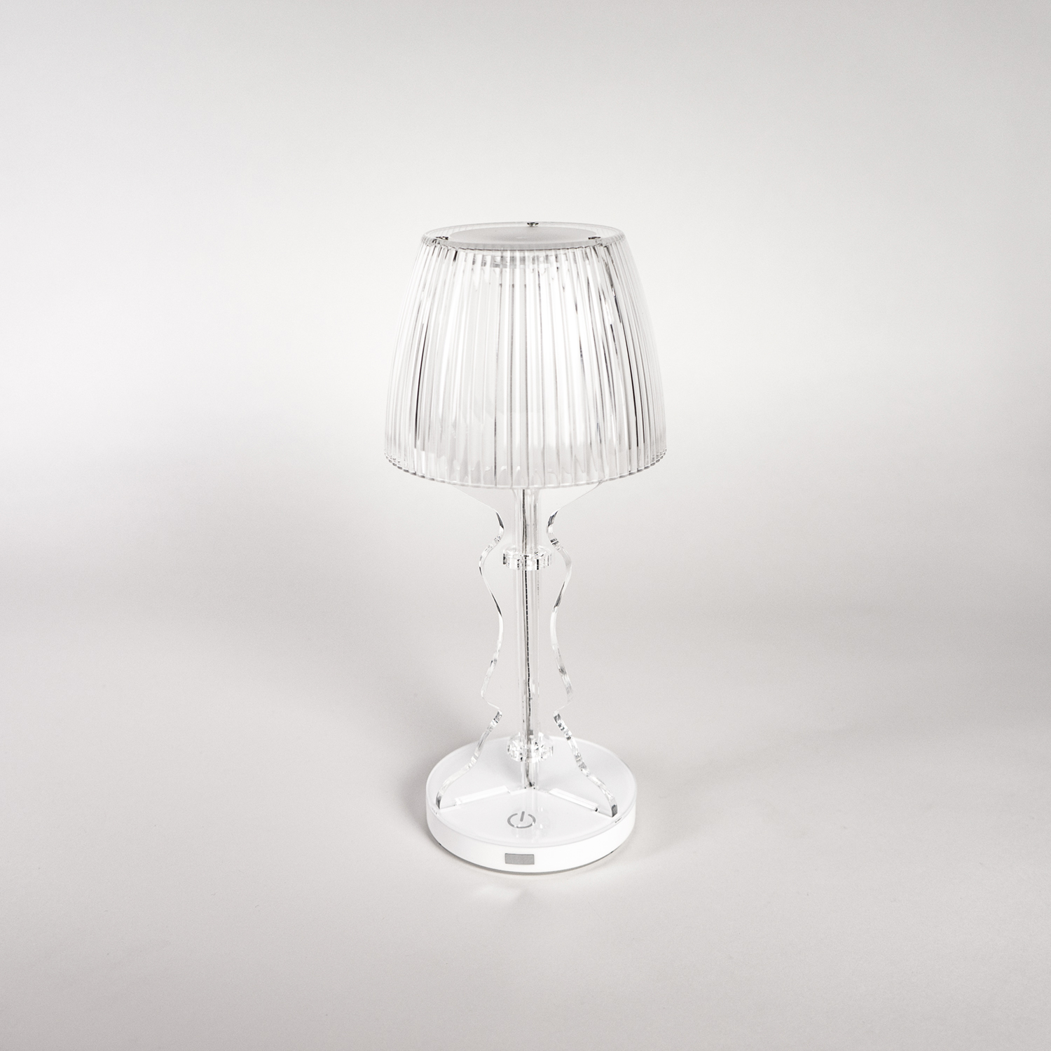 LED: Diameter 14x33h cm. PMMA thickness 6 mm. Touch switch that adjusts the brightness and power reserve. 1W-24V