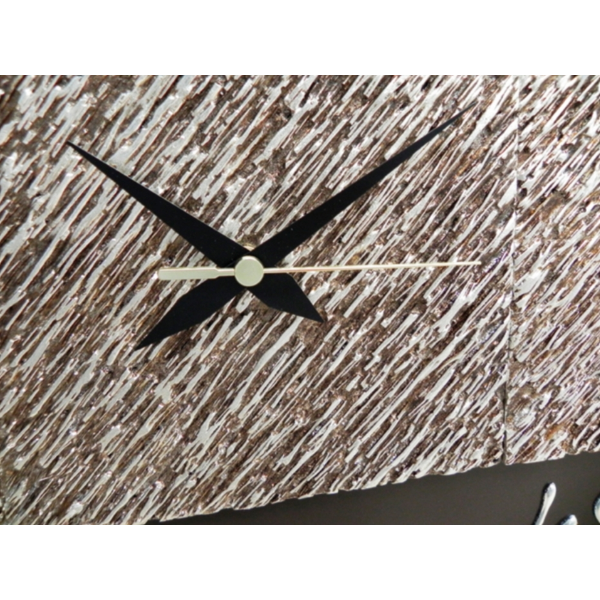 clock 150x50 cm CLOCKS APPLIED ON PANEL IN LACQUERED MDF COFFEE WITH HAND-DECORATED MARMORINE SHAPES