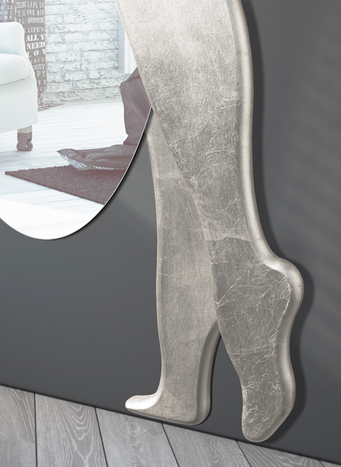 Shaped mirror, coffee lacquered, hand-decorated in silver leaf.