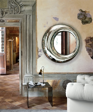 Rosy, by Fiam, is a wall mirror designed by Doriana and Massimiliano Fuksas, with a soft and rounded design.