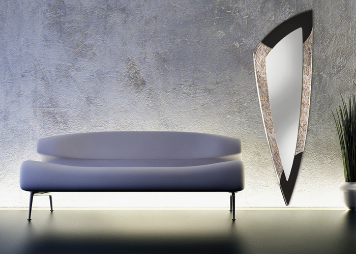 mirror cm63x190 (mirror cm 35x140) LACQUERED AND DECORATED MDF FRAME WITH RESINS AND SILVER LEAF